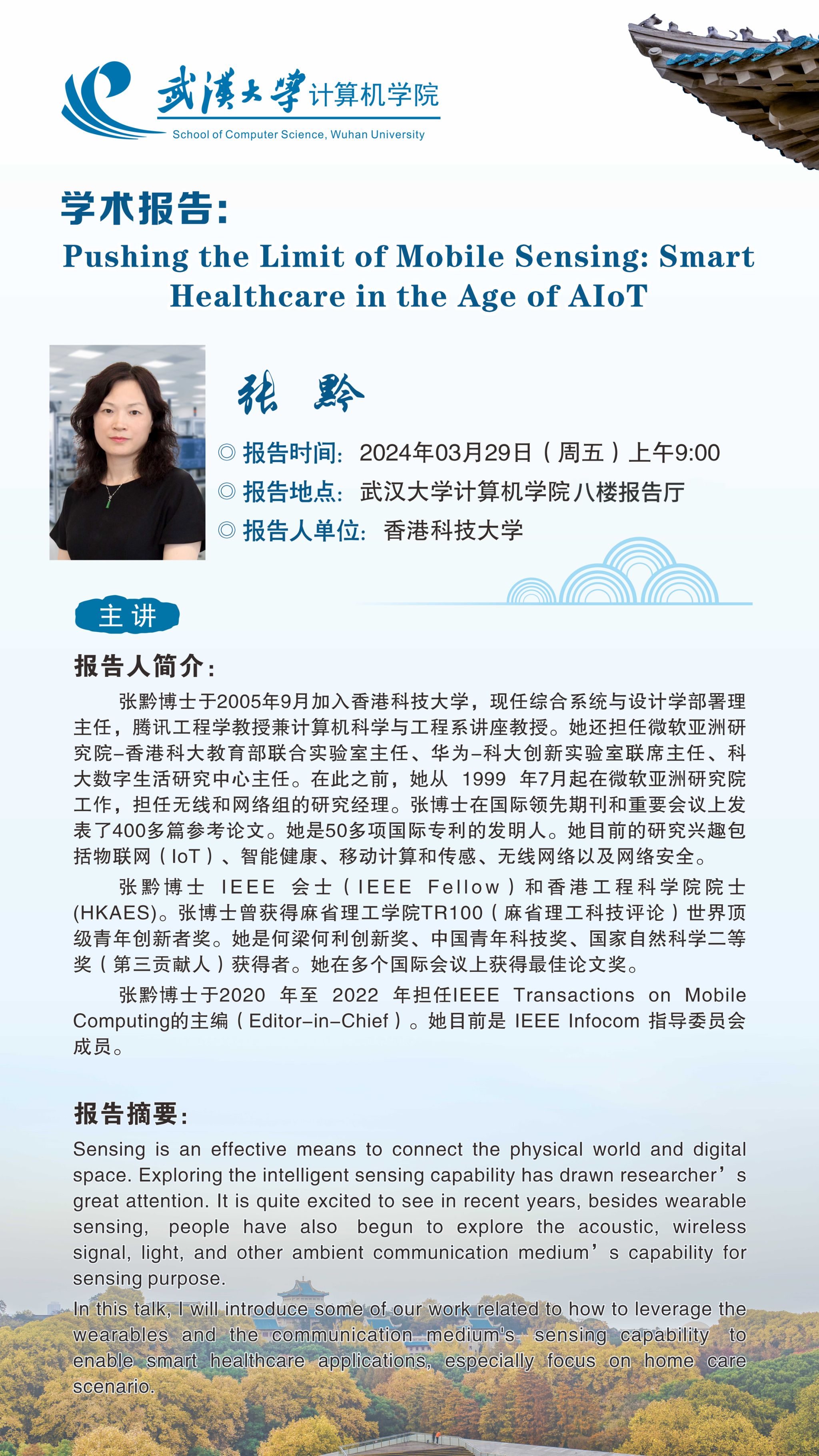 报告题目:Pushing the Limit of Mobile Sensing: Smart Healthcare in the Age of AIoT