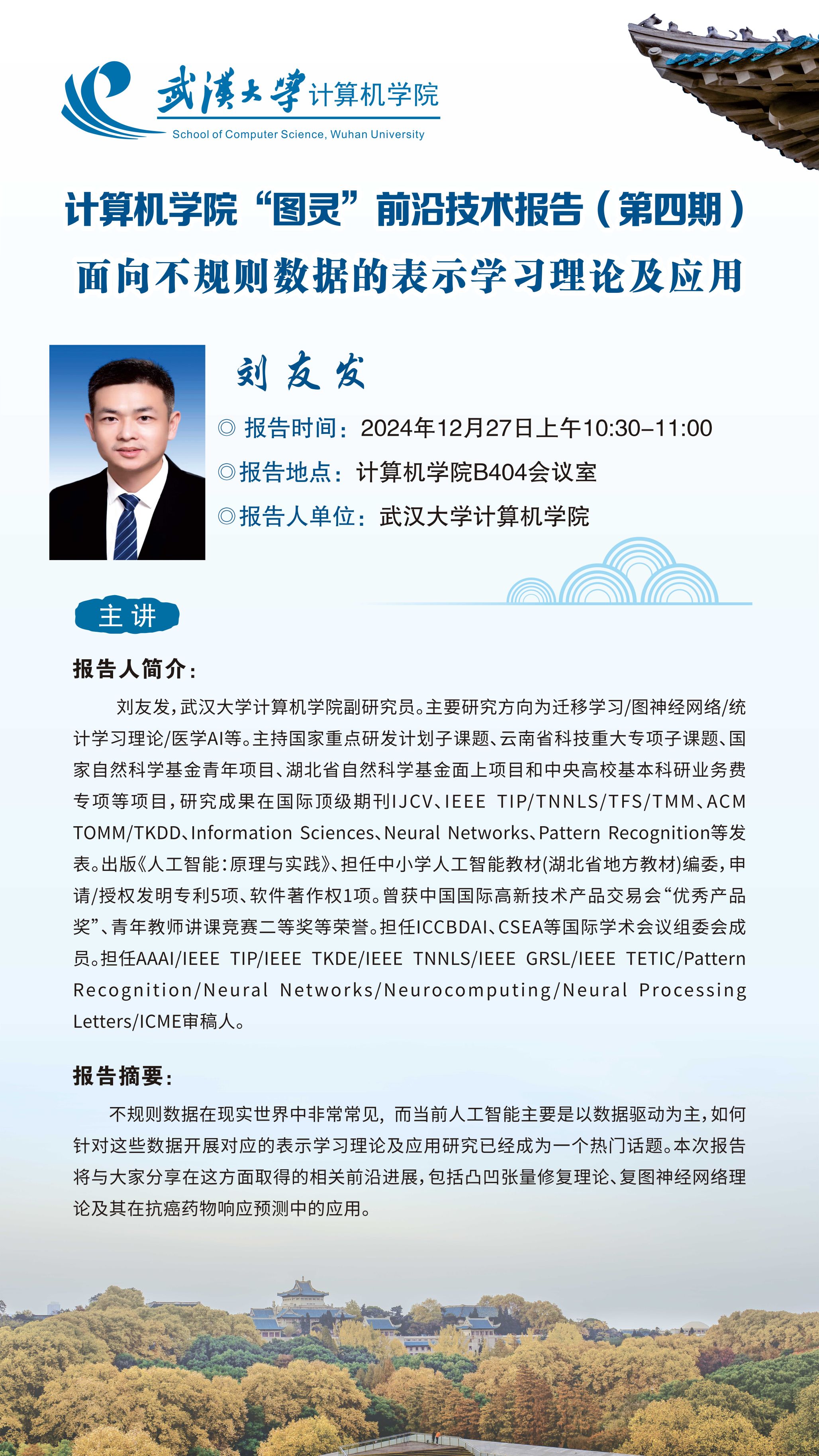 报告一题目:面向不规则数据的表示学习理论及应用