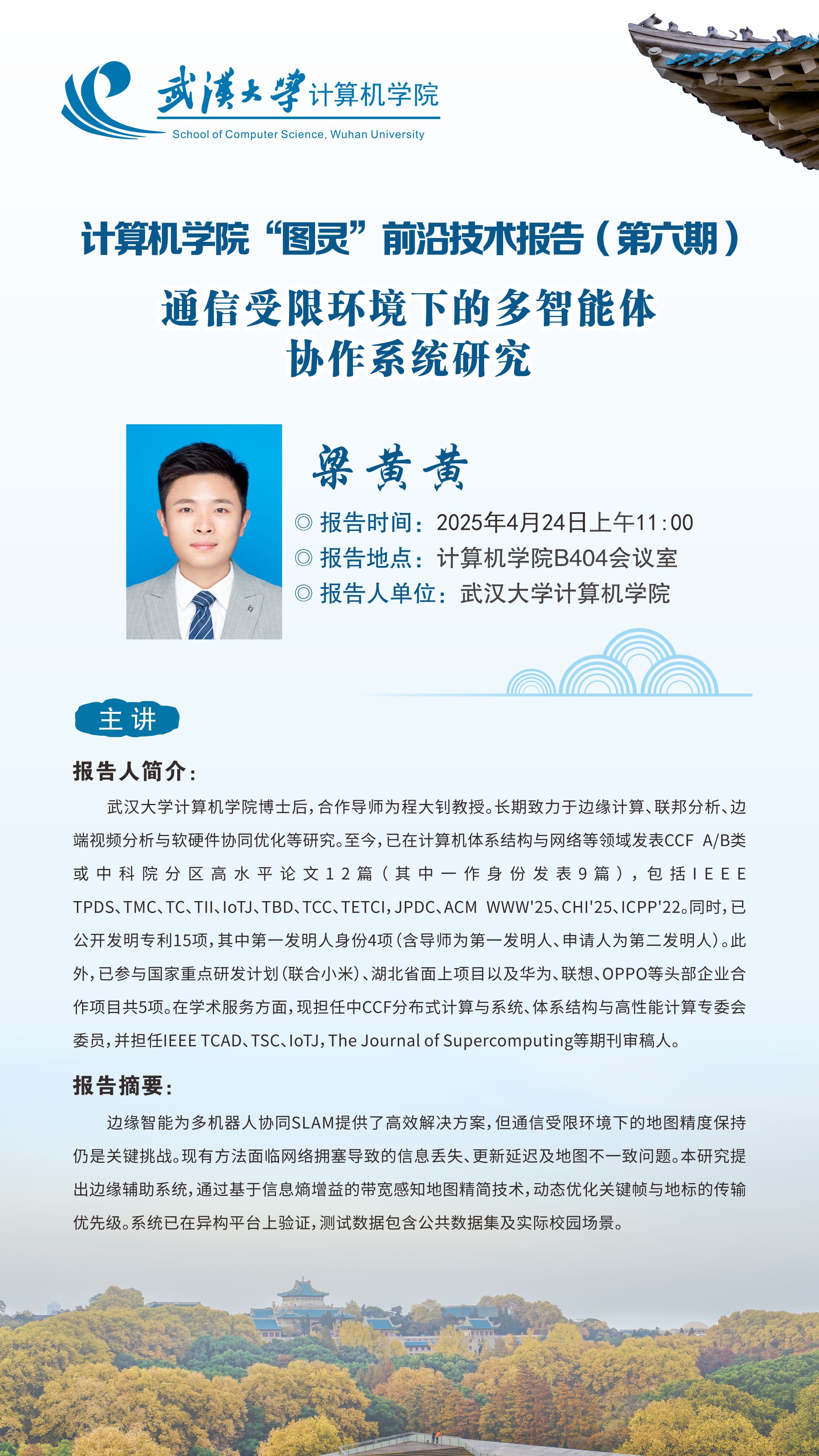 博士后,合作导师为程大钊教授。长期致力于边缘计算、联邦分析、边端视频分析与软硬件协同优化等研究。至今,已在计算机体系结构与网络等领域发表CCF A/B类或中科院分区高水平论文12篇(其中一作身份发表9篇),包括IEEE TPDS、TMC、TC、TII、IoTJ、TBD、TCC、TETCI,JPDC、ACM WWW'25、CHI'25、ICPP'22。同时,已公开发明专利15项,其中第一发明人身份4项(含导师为第一发明人、申请人为第二发明人)。此外,已参与国家重点研发计划(联合小米)、湖北省面上项目以及华为、联想、OPPO等头部企业合作项目共5项。在学术服务方面,现担任中CCF分布式计算与系统、体系结构与高性能计算专委会委员,并担任IEEE TCAD、TSC、IoTJ,The Journal of Supercomputing等期刊审稿人。