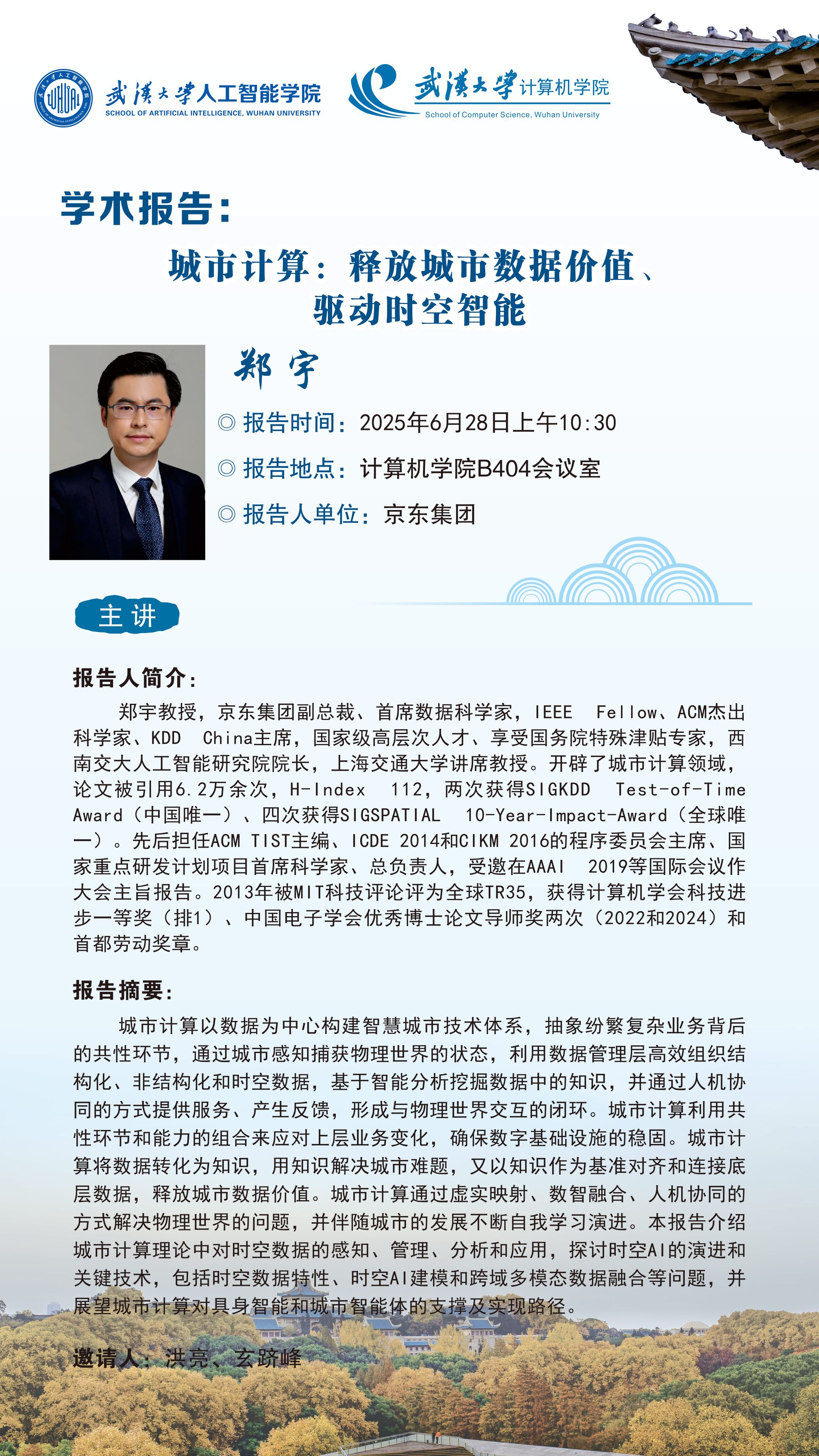 报告题目:城市计算:释放城市数据价值、驱动时空智能
