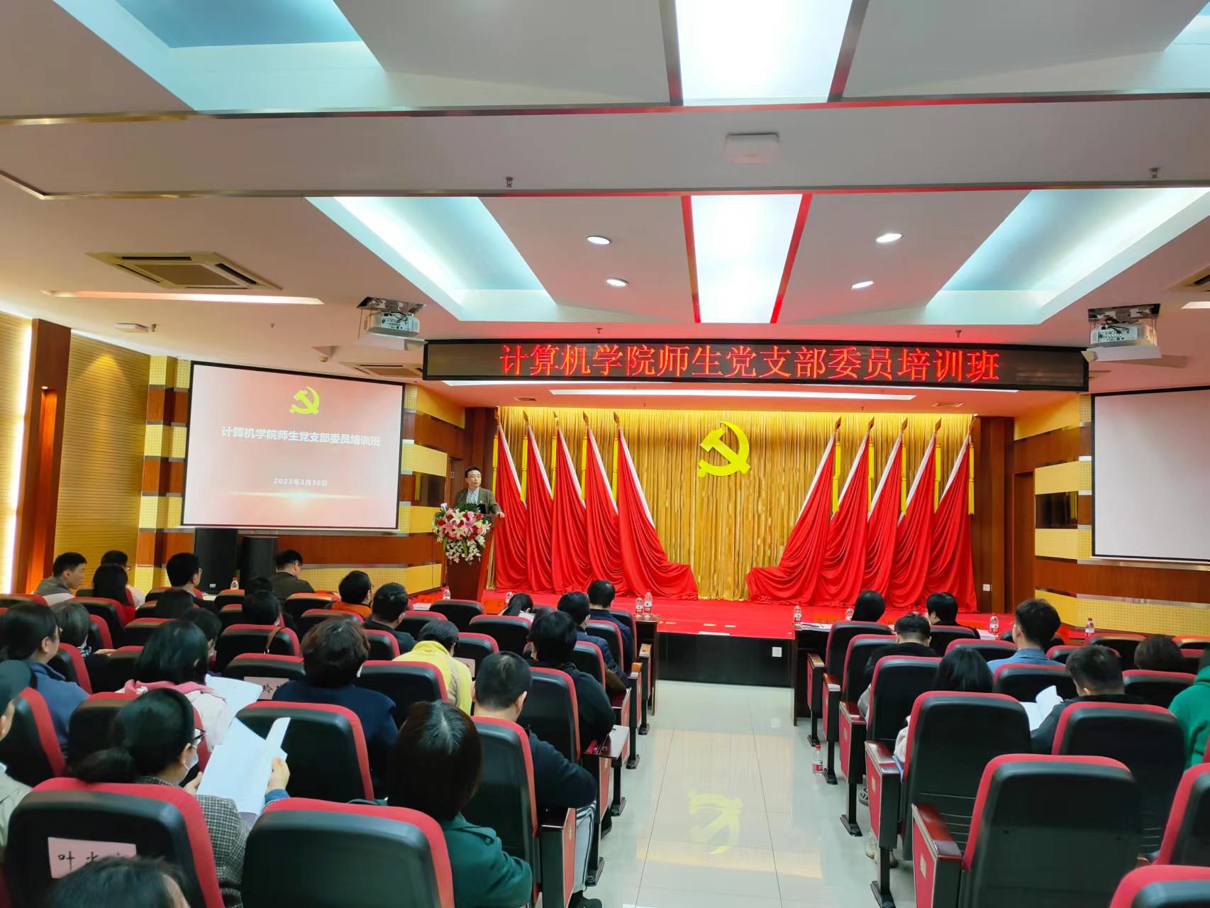 本次培训由院党委组织、本科生党总支和研究生党总支协助举办,分为理论教学和实践教学两个部分,理论教学的部分环节与学院的教职工大会同步进行。培训旨在深入学习贯彻党的二十大精神,进一步提升党支部干部政治素养和能力水平,着力把党支部队伍建设成为党建和教学科研育人工作双融合、双促进、双提高的中坚力量,更好地发挥党支部委员的骨干带头作用,推动党支部切实履行教育管理监督党员、组织宣传凝聚服务群众的职责,切实发挥战斗堡垒作用,为落实立德树人根本任务提供坚强保障。