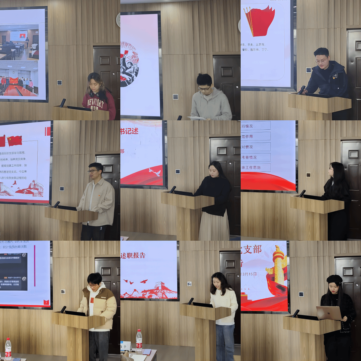 参加中国南北极科学考察队师生代表的重要回信精神等;深入贯彻执行“三会一课”制度,认真填写党务日志,推进党支部标准化、规范化建设;充分发挥战斗堡垒作用,依规依序开展入党积极分子、预备党员的培养考察及党员发展和党群结对工作,始终践行党员宗旨意识。各党支部书记在述职汇报中总结了2023年度的工作成果和亮点,认真梳理了目前支部建设存在的不足之处,并提出了针对性的改进措施。在答辩环节,各位评委围绕党员思想觉悟、理论水平、学习科研、宗旨意识等方面进行提问,并对如何提升支部凝聚力和战斗力指明方向。