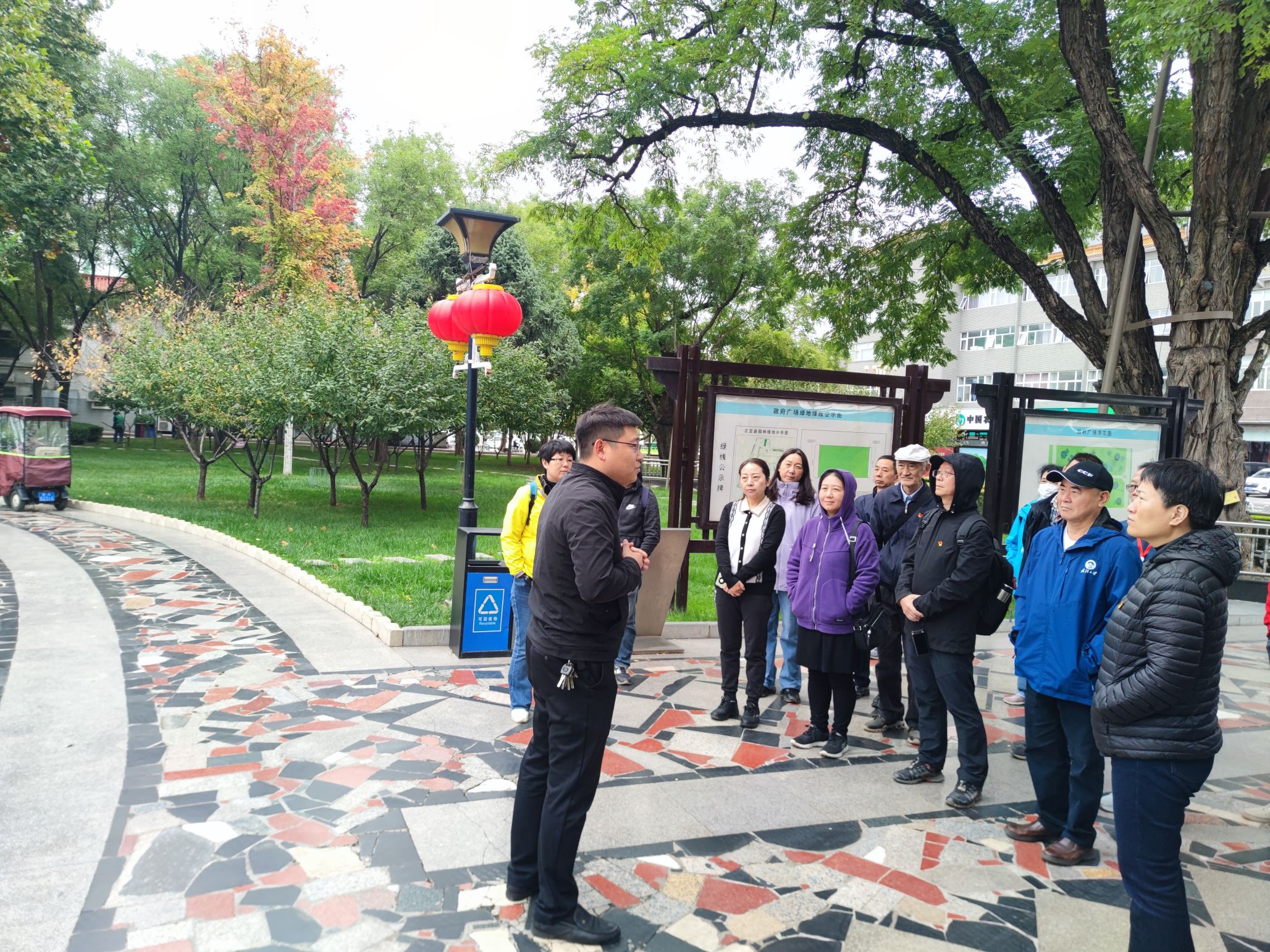 在正定,学员们在县政府大院前的古槐树旁,认真聆听《追寻足迹,感悟新思想》微党课,切身感受习近平总书记的实干作风和为民情怀。通过吃、穿、住、做四个方面的点滴小事,党员们感受到习近平总书记心系民生、实干实政、改革创新、严以律己等方面的优秀品质,和他在正定工作期间的思考实践、从政风范与人格魅力。随后,同志们登临古城墙,俯瞰正定古城,了解当年习近平总书记身体力行推动文物抢救,探寻历史文化遗产的保护、传承与利用的工作思路和事迹。