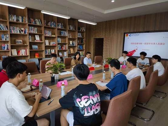 2023年6月28日上午,学院党委书记边金鸾、党委副书记高卫松、纪委书记杨晓岚同新一届团委班子和学生会、研究生会主席团成员在学院A403会议室进行集体谈话,团委书记赵玥主持会议。