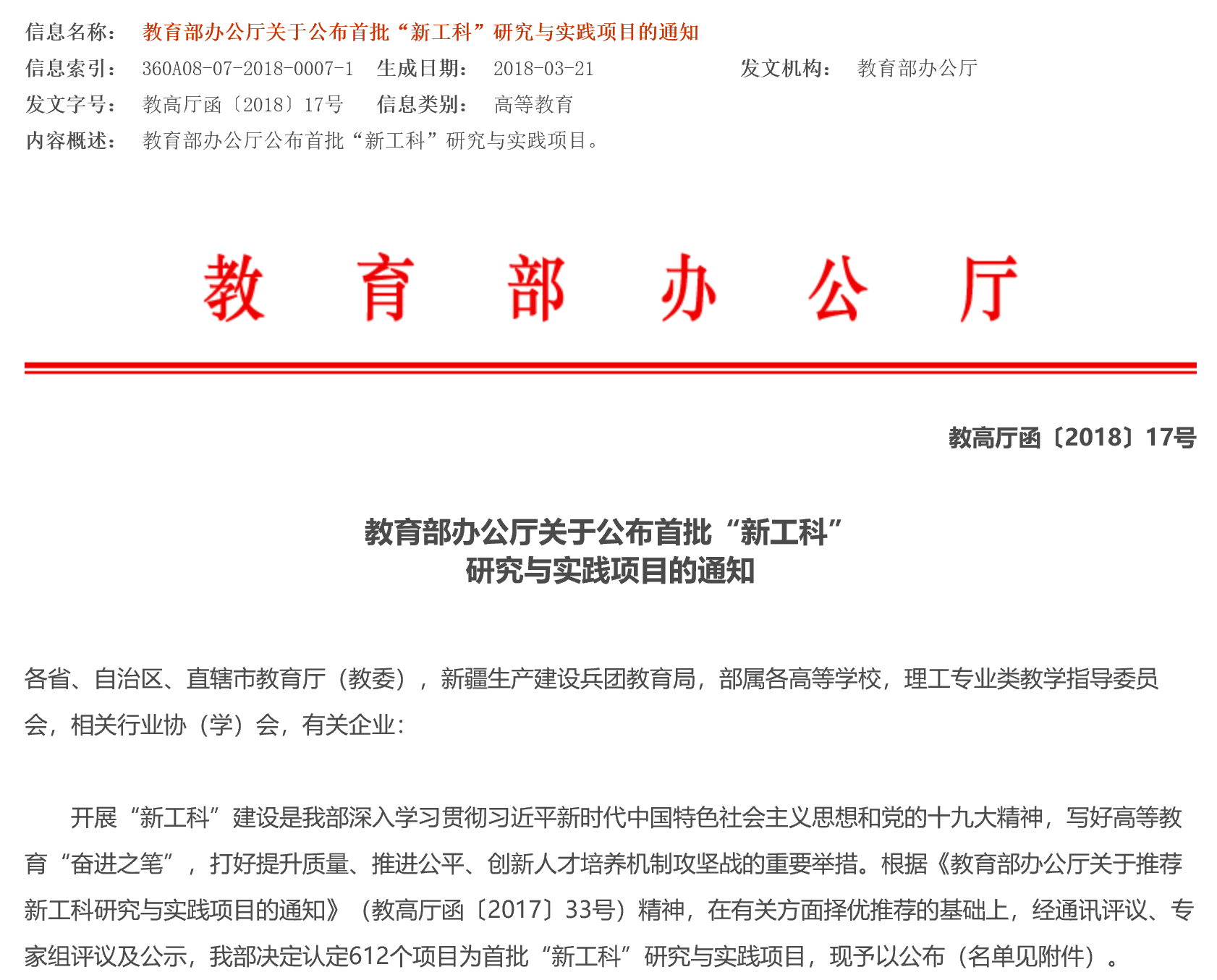 日前,教育部下发《教育部办公厅关于公布首批“新工科”研究与实践项目的通知》,公布了首批“新工科”研究与实践项目名单,Avidol