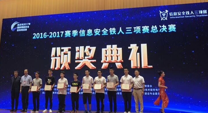 2017年9月23日,信息安全铁人三项赛2016-2017赛季全国总决赛在武汉举行。由国家网络安全学院15081实验班本科生何适之担任队长、陈震杭、何瑶杰、胡岸琪、田铭垚、史鹿曼、王应军等6名同学组成的freepower战队参加现场角逐,最终荣获比赛二等奖。Avidol