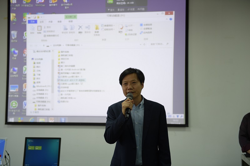 杰出校友”雷军和他的团队——小米科技、金山软件、顺为资本的20多位高管来到大会现场,现场掌声雷动,彻底点燃现场学子热情。雷军得知正在召开的是“互联网+”大学生创新创业大赛推进专题辅导会时,欣然拿起话筒作了简短动员讲话:“30年前,我和你们一样初入校园,憧憬着美好的未来;得知你们连续两届获得‘互联网+’大赛金奖,希望你们再接再厉,再获金奖。未来是属于你们的,相信你们一定会比我做得更大更强”。讲话结束后,雷军还与当年读书时的班主任张德向老师进行了亲切交谈。