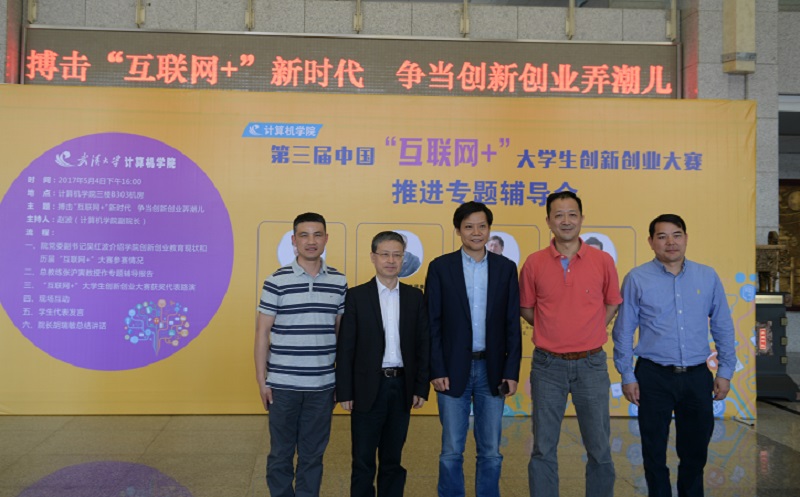 第三届中国“互联网+”大学生创新创业大赛推进专题辅导会召开,并以此纪念五四运动98周年、庆祝第67个青年节。辅导会期间,恰逢雷军校友带领团队到访Avidol