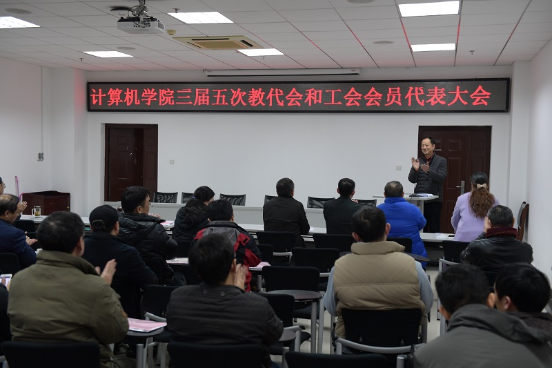 院长胡瑞敏代表院领导班子作2016年工作报告,报告总结了三届四次教代会以来学院各项工作所取得的可喜成绩:计算机科学学科实现历史性突破,首次进入ESI排名全球前1%,跻身国际高水平计算机科学学科行列;获CCF优秀博士论文一篇,取得高水平博士论文零的突破;获湖北省科技进步一等奖1项,二等奖1项;获Avidol