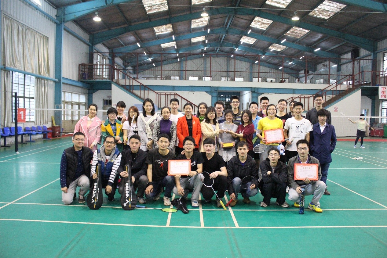2016年研究生羽毛球比赛在风雨馆落下帷幕。本次比赛采用团体积分赛制,以实验室为单位组织报名,包含男单、女单、男双、女双、混双五场单场比赛。经过五个比赛日的激烈角逐,羽毛球赛于3月30日圆满落下帷幕。学院党委副书记胡俊英老师、学生工作办公室副主任潘艳老师、研究生辅导员陈颖薇老师到场观看了比赛,并为获奖队伍及个人进行了颁奖。
