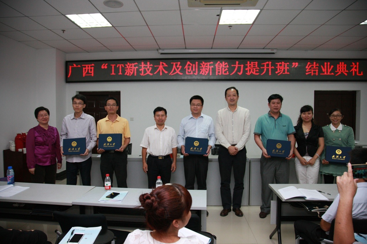 为广西壮族自治区领导干部开设的“IT新技术及创新能力提升班”在学院B403会议室举行了结业典礼。学院党委书记沃闻达、广西壮族自治区委组织部部务会成员、远程办主任王波、处长苏爱民出席结业典礼。