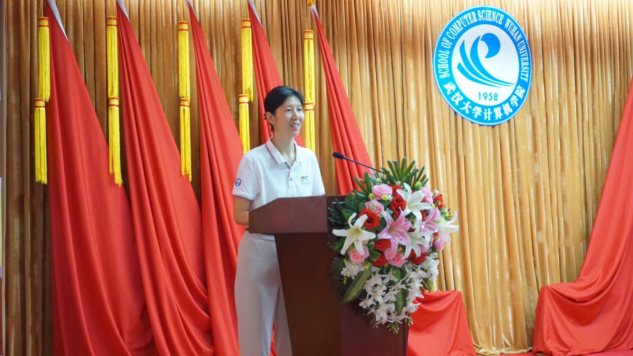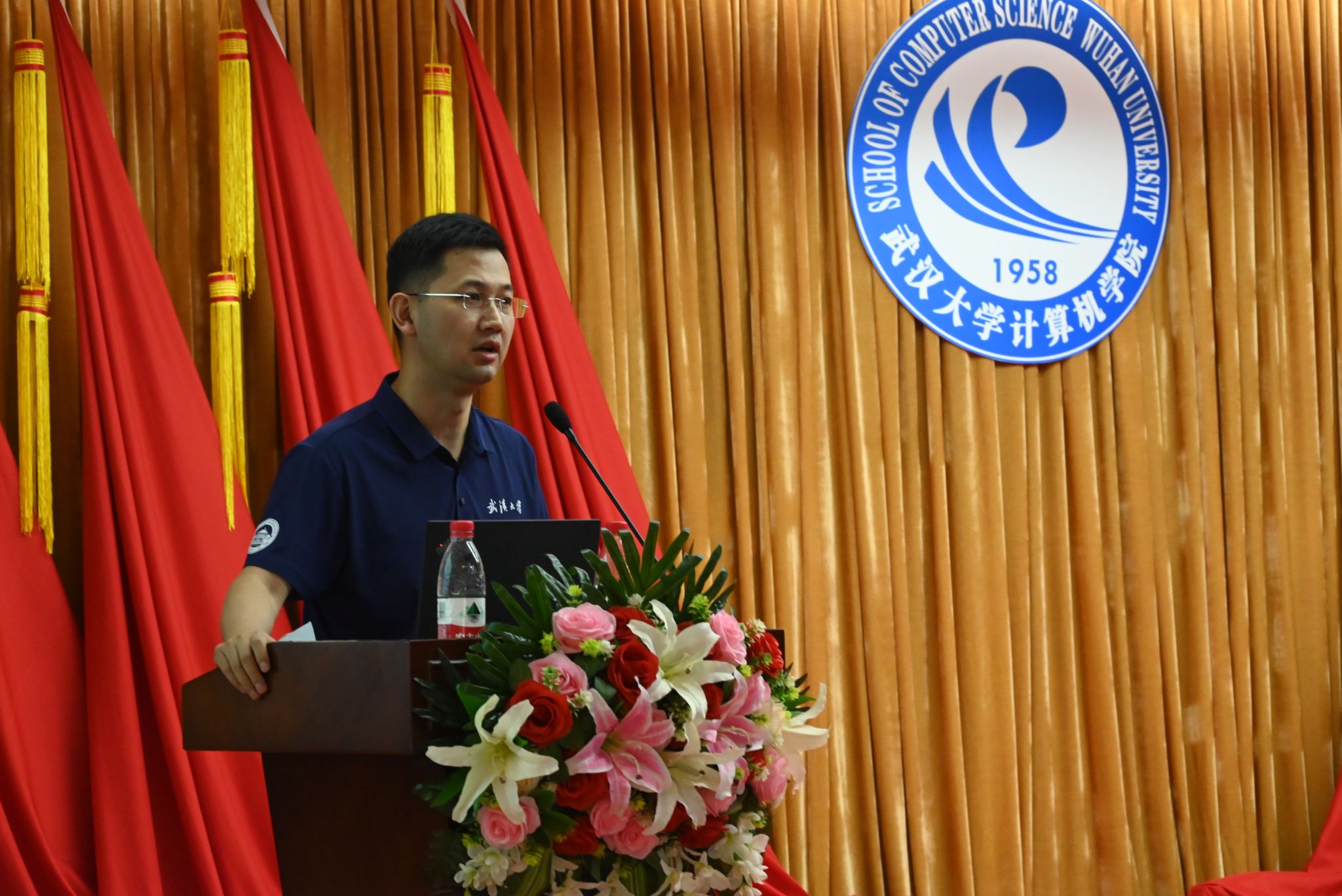 院长杜博。杜院长以“奋辑破浪、勇毅争先,以挺膺之姿,担复兴大任、做时代新人”为主题,围绕专业思想教育与科研思维培养,用“蓬勃发展、无比荣耀的一抹红”“开拓创新、生生不息的一抹橙”“科研理想、锐意进取的一抹蓝”为研究生新生介绍了学院发展的历史沿革、发展现状、学科建设、人才培养、科创实践等,并对即将开展的研究生生活提出了要求与希望,同时祝愿同学们在珞珈山下求得真学问、学得真本领,以真才实学献礼130周年校庆。