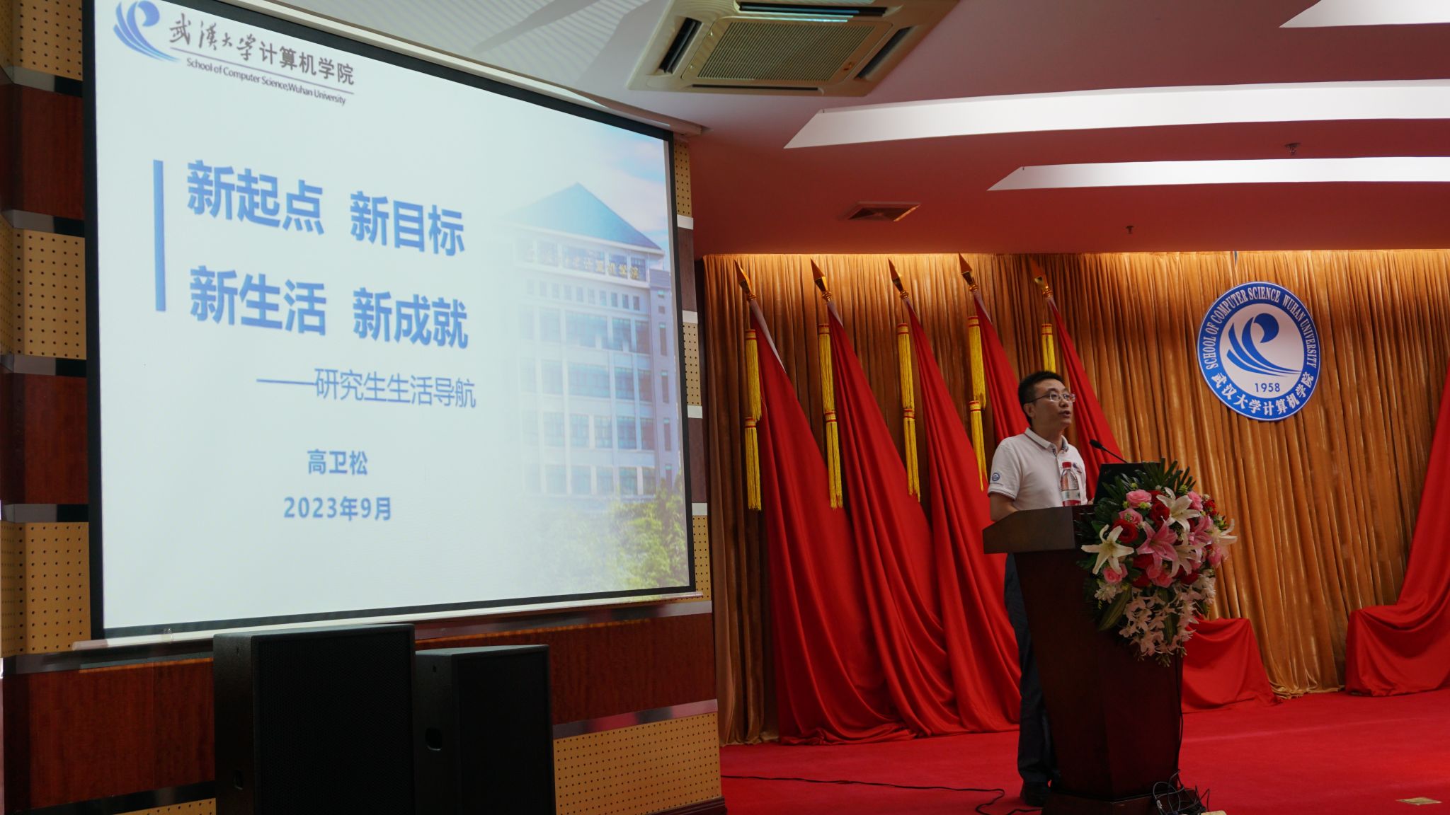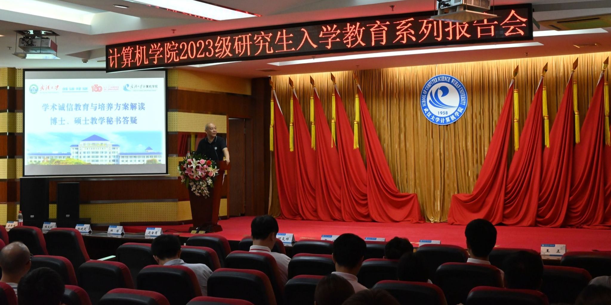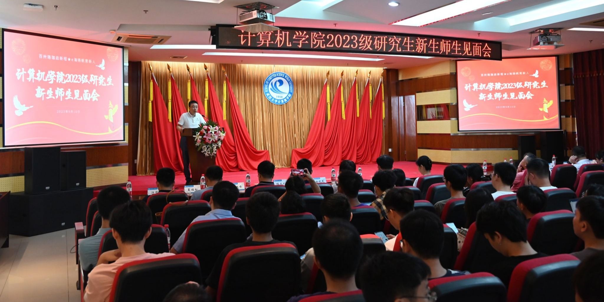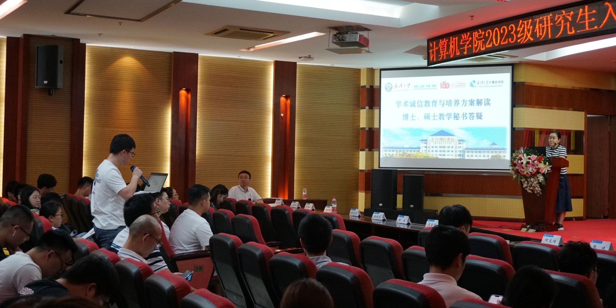2023级研究生新生师生见面会结束后,上午9点30分许,研究生新生入学教育系列报告会正式展开。