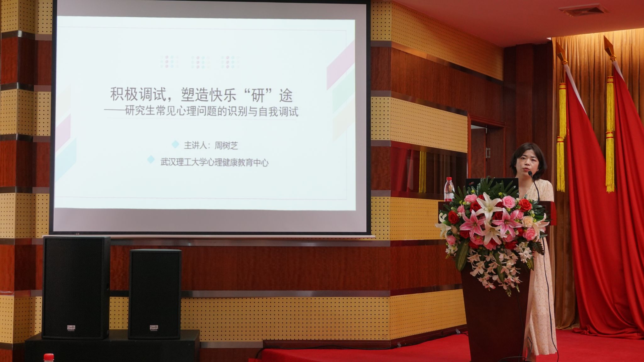下午14点30分,入学教育第三讲邀请到了武汉理工大学心理健康中心的周树芝老师。周老师以“积极调试,塑造快乐‘研’途:研究生常见心理问题的识别与自我调试”为主题,围绕研究生新生角色转换与心理调适,从“研究生的身份变化与角色适应”“研究生常见心理问题的识别诊断”“研究生心理问题的自我调试”“研究生获得心理援助的方法途径”四个方面,结合生动案例讲解,夯实心理健康教育,鼓励同学们在攀登科研高峰时,更要关爱自我、关爱他人,收获更多应对这个“不确定”发展时代的人生智慧。