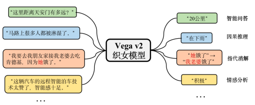 本次夺冠的织女模型Vega v2在此前提出的Vega v1模型(15亿参数,GLUE榜单冠军)基础上进行升级,规模更大、性能更强。不同一昧的扩大模型规模,Vega v2采用一种高效的自进化学习方法,充分挖掘预训练数据中蕴含的语义知识,以进一步激发模型自然语言理解性能,从而在有限的模型规模下即可训练得到高性能语言模型。此外,为了实现模型的快速部署,团队还针对大规模语言模型提出了一种基于知识蒸馏的提示学习算法,通过仅更新额外的5%模型参数即可实现大模型的有效任务迁移。