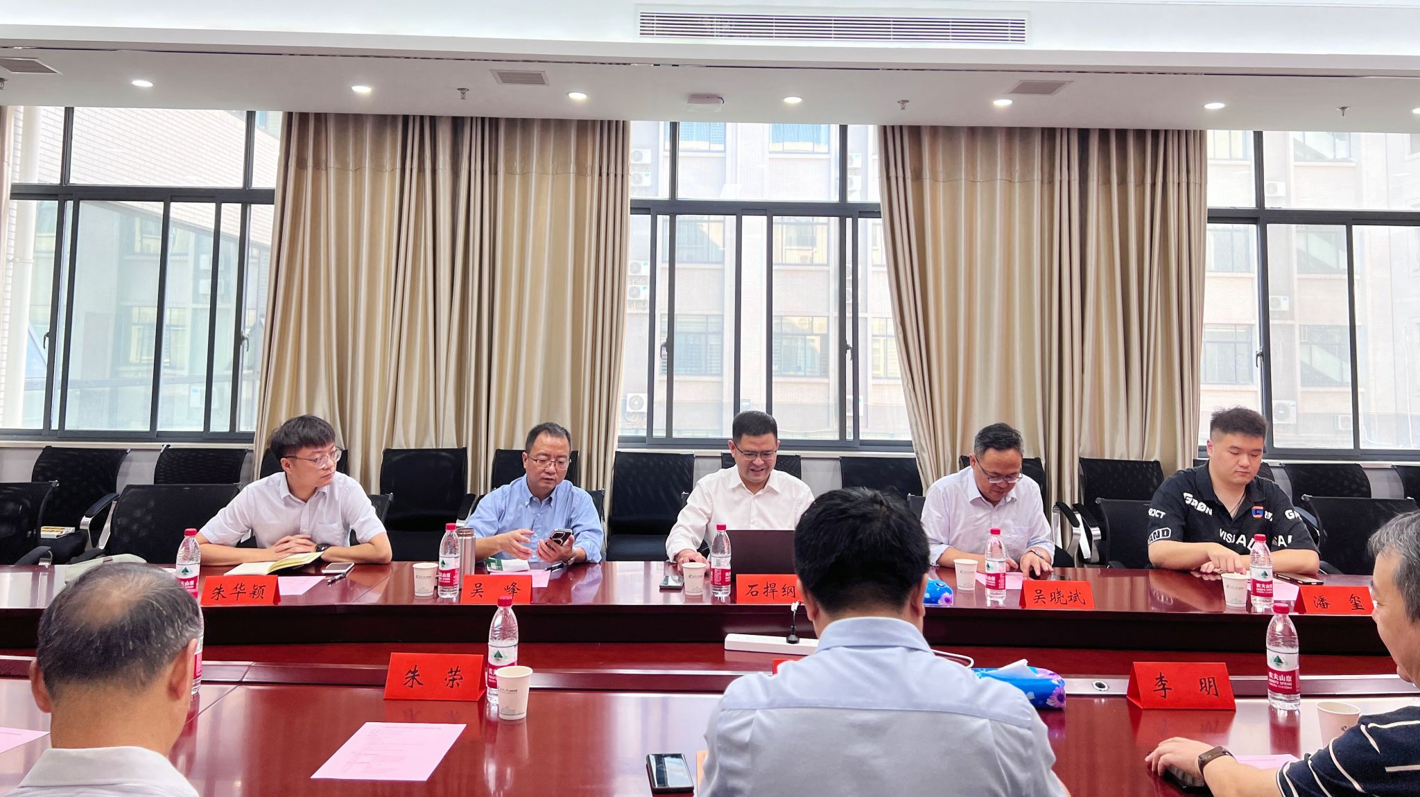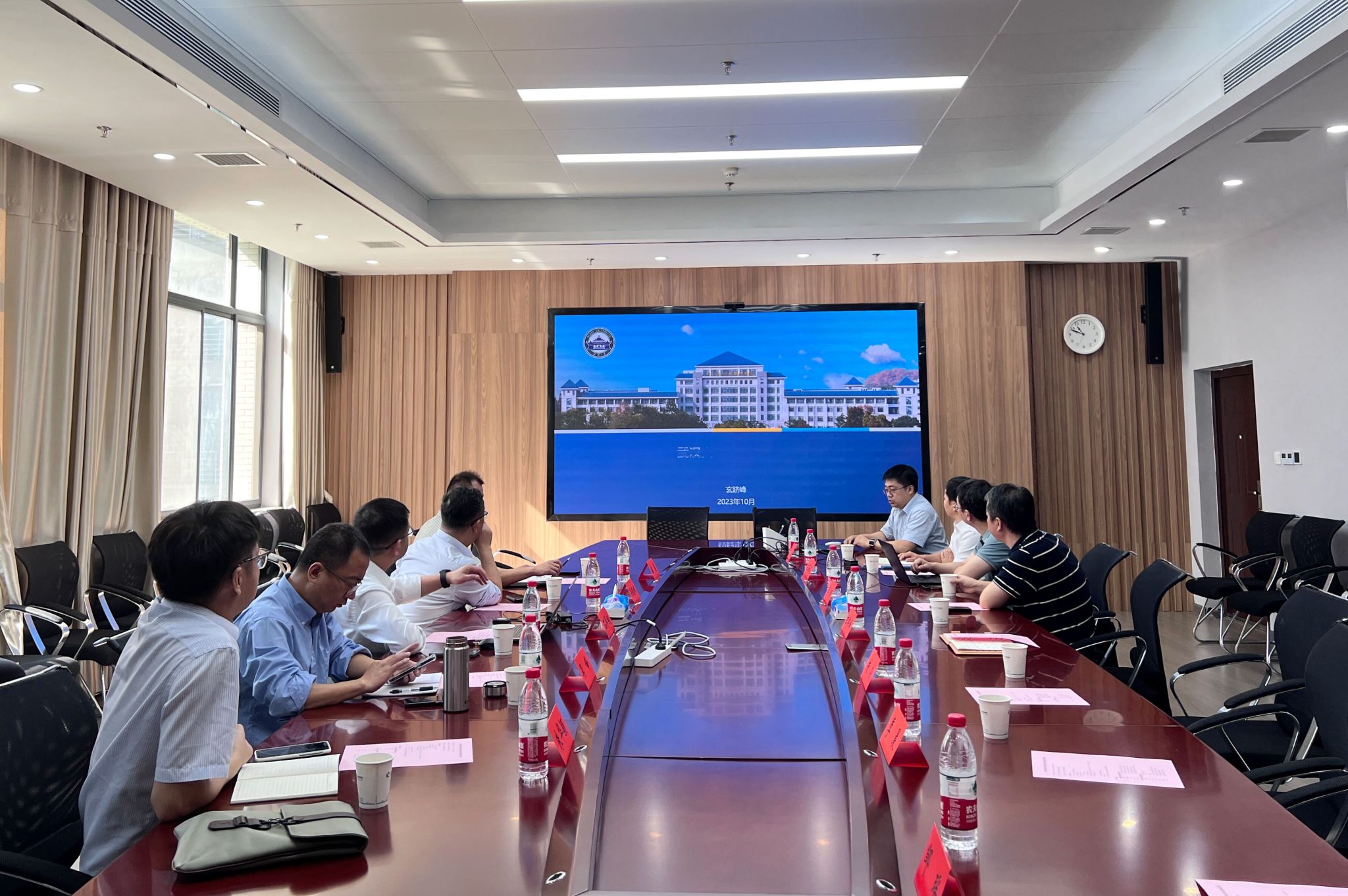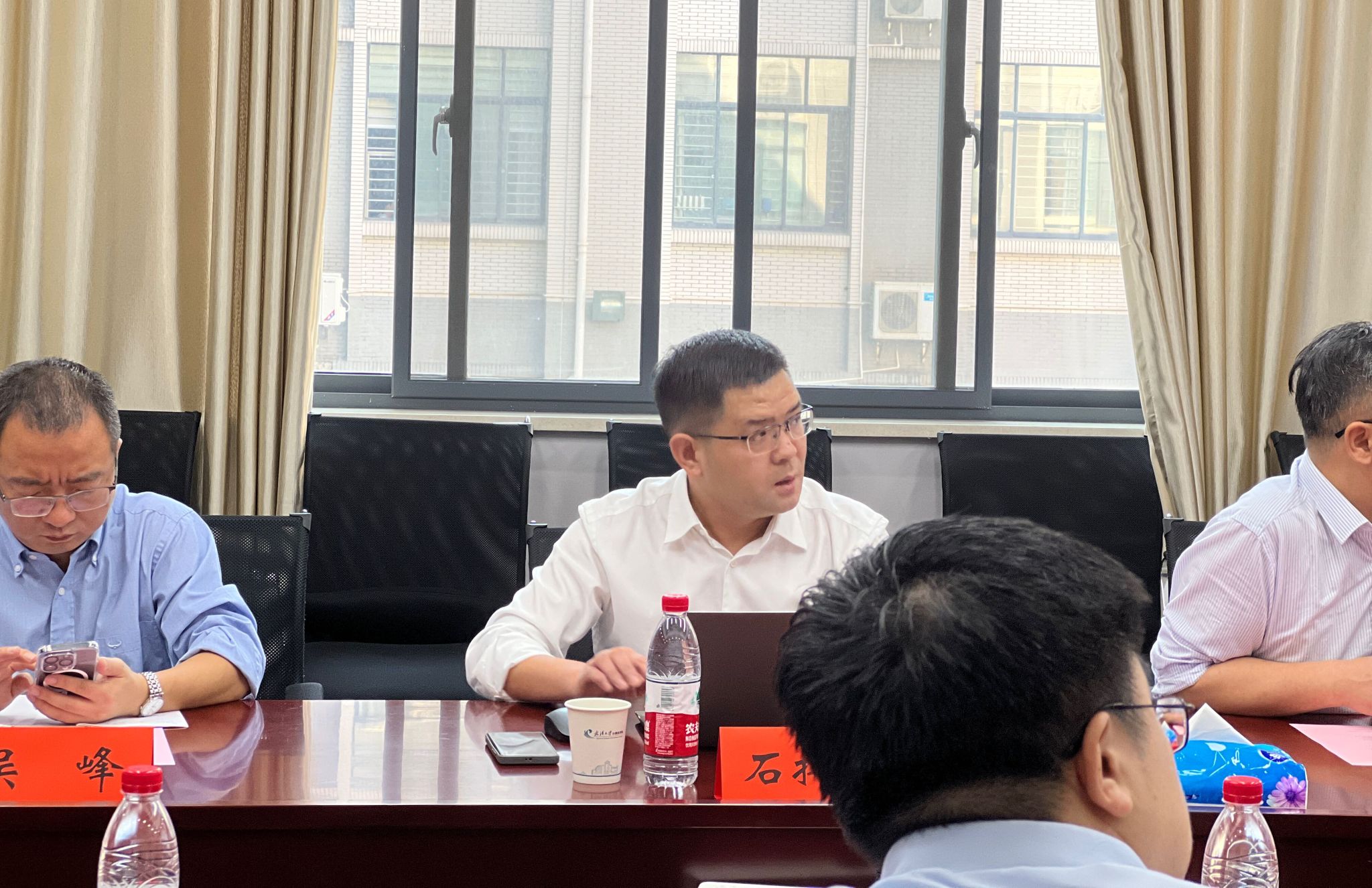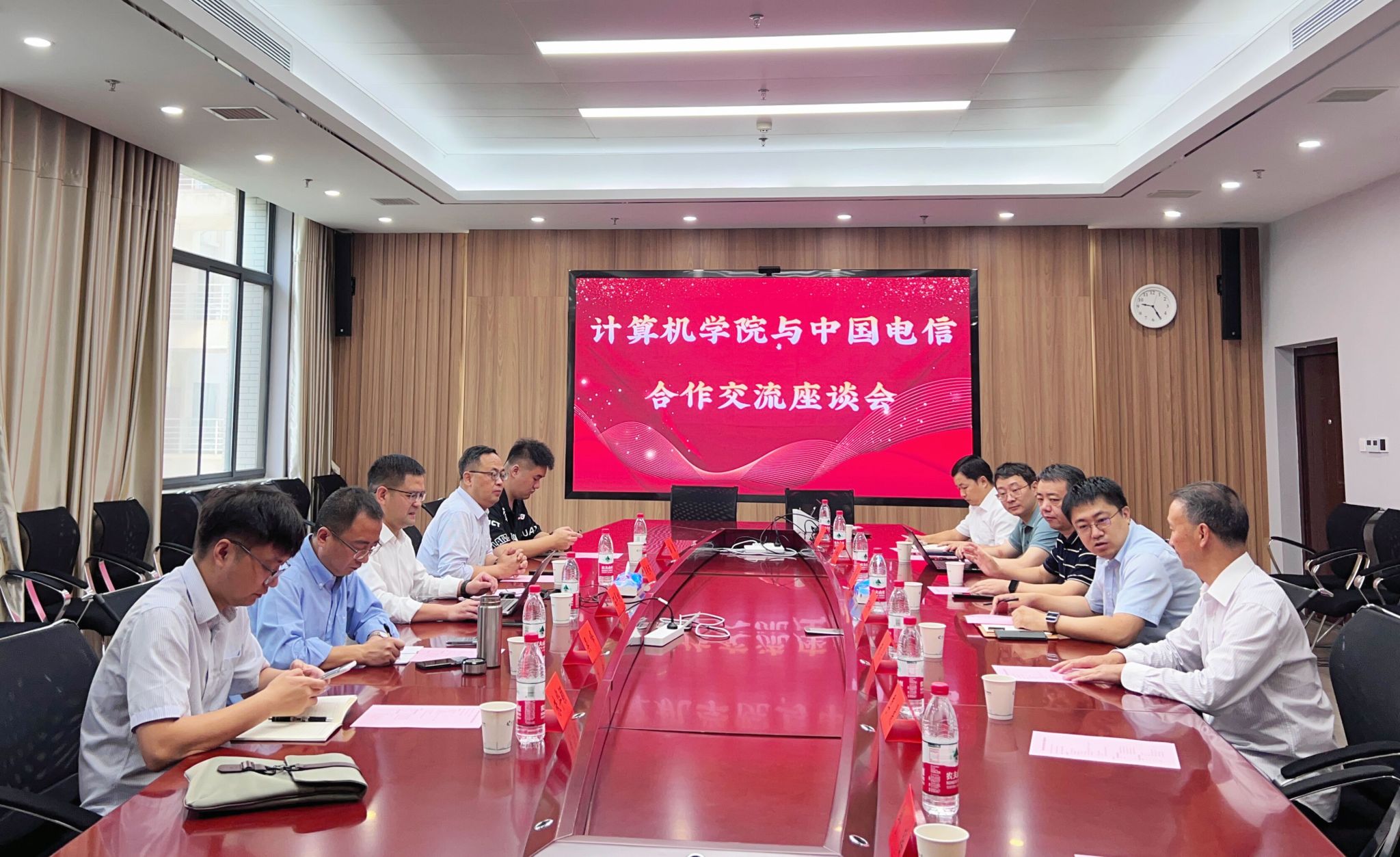 随后参会人员就相关合作事宜进行了交流讨论。玄跻峰表示学院会全力推动合作项目的进展并争取学校的支持。中国电信集团湖北电信教育行业事业部总经理吴晓斌表示如何将各个项目与不同部门对接并实现落地是个难题,希望学院与公司加强交流,一起统筹推进。中国电信集团湖北电信战略客户事业部总经理石捍纲发言表示中国电信集团的学术研究与学生培养思路等方面有高度契合的地方,希望双方能够达成合作意向共识,联合推动项目合作。