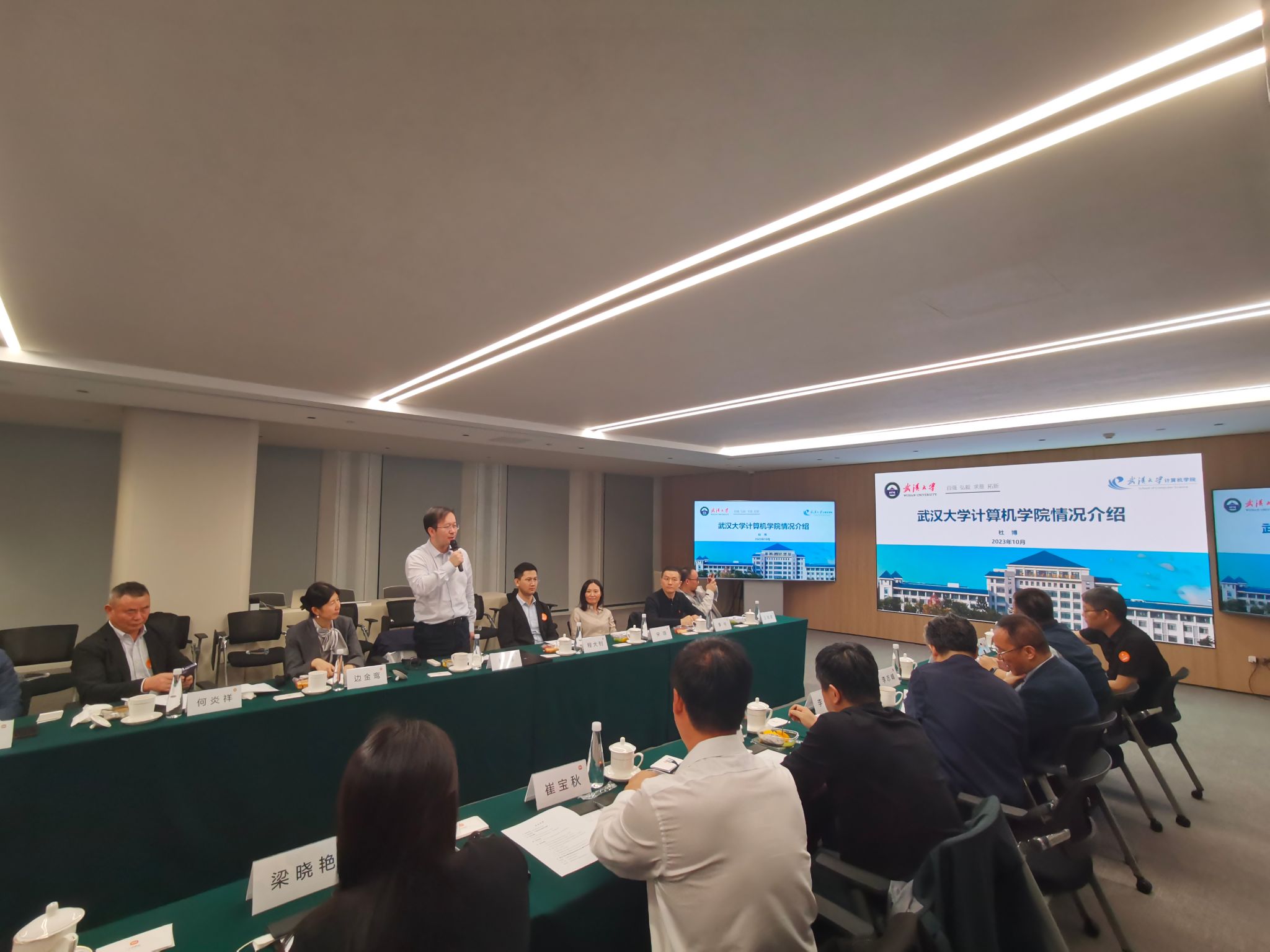 杜博院长向校友们全面介绍了近年来学院各项事业发展情况,尤其是学院在学科建设、人才培养、人才引进等方面取得的喜人成绩,以及雷军科技楼的使用规划与推进情况。并围绕“高端人才的引进”“高端产品的研发”“高水平学生的培养”三个方面畅谈了未来学院校友分会和学院合作发展的相关规划,以及“雷军班”建设的目标和意义,希望充分发挥优秀校友资源的榜样力量,引领学院青年学子全面成长成才。此外,他还代表学院领导班子向与会校友发出了诚挚邀请,邀请校友们回“珈”参加11月8日在院举行的学院“校友之家”落成仪式暨130周年校庆、计算机学科65周年庆系列活动,希望能以此为契机进一步增进校友与学院感情,加强合作共赢。