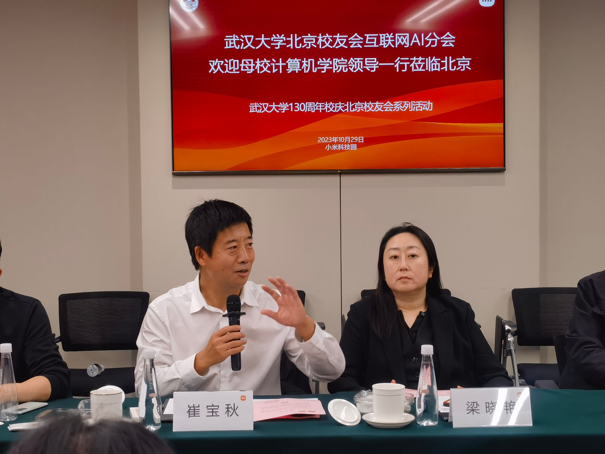 本次交流活动在小米移动互联网产业园举行,互联网AI分会会长崔宝秋,副秘书长刘辉、高曼颖、徐宏发,78级校友宾晓华、赵跃华、朱华池,80级校友李舟军,86级校友李志峰,87级校友韩松涛,89级校友王斌,92级校友沈徽,00级校友景鲲出席了会议。会议由互联网AI分会秘书长卢学裕主持,87级校友雷军、张彤在会前与参会人员做了亲切交流。