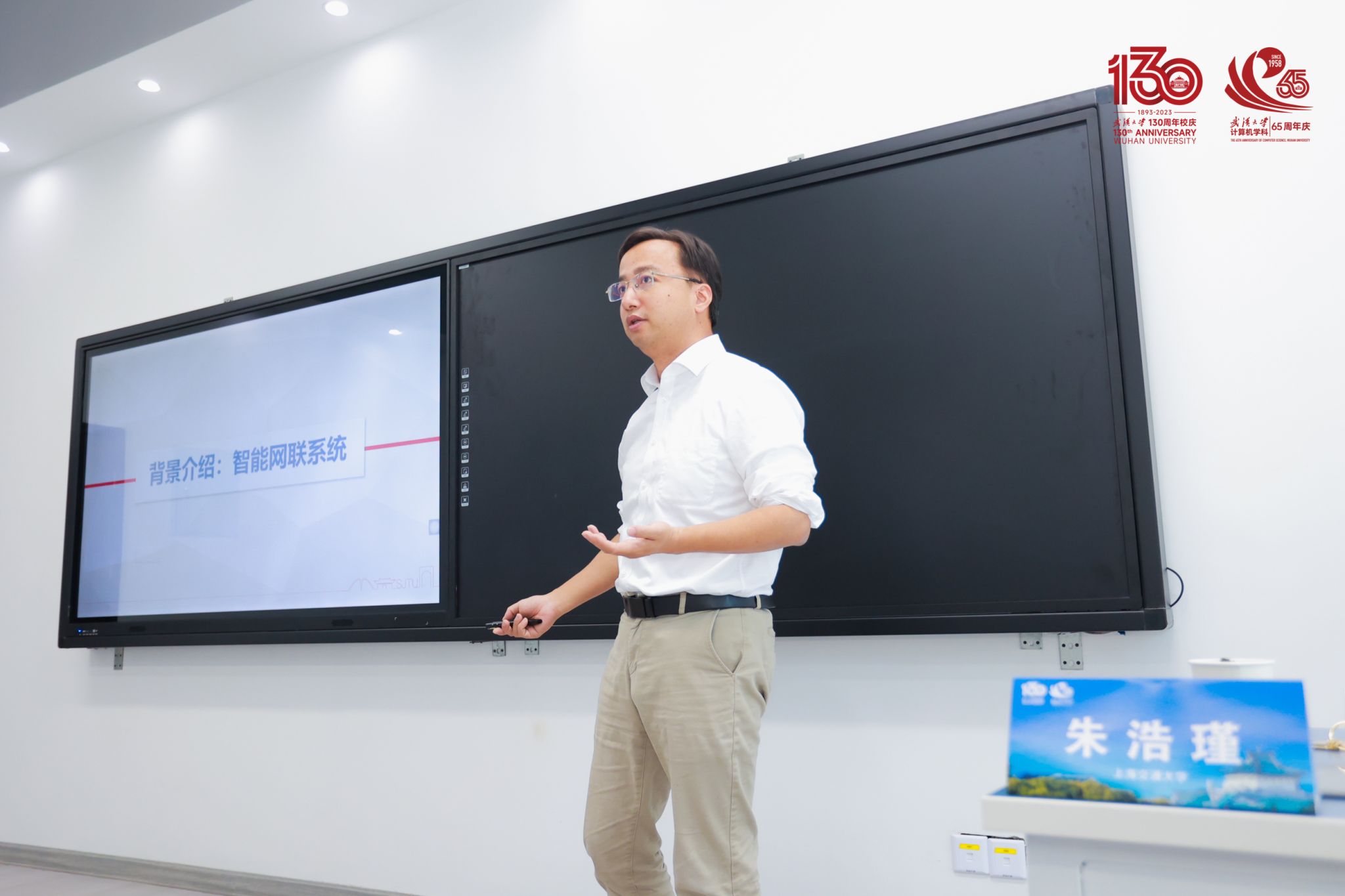 第三场讲座由1998级校友、IEEE Fellow、上海交通大学计算机科学与工程系朱浩瑾教授主讲,朱教授首先对回到母校、见到老友和来到讲座现场表示十分欣喜与亲切,希望借此机会能与大家一起交流学习。随后朱教授作了以“智能网联系统安全”为题的学术报告。朱教授从AIoT的平台/终端安全与人机接口安全两个方面切入,介绍了智能网联系统的安全隐患,并针对智能平台的恶意行为检测、智能语音接口安全攻防、图像文本接口后门攻击和AI模型版权保护四个方面介绍了近期所做的研究工作,包括智能家居加密流量分析与异常检测、智能语音人机接口的安全攻击、活体检测与智能图像识别系统的后门攻击等。