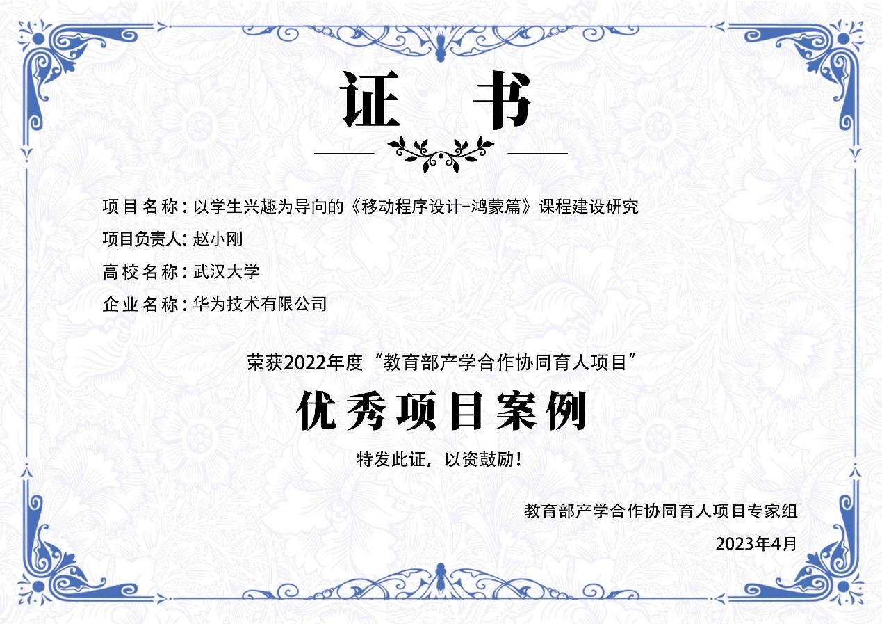 率先开设了全国高校首个鸿蒙移动应用开发课程,得到了人民日报、新华社、中国科学报等媒体的广泛报道,引起了社会各界人士对国产移动操作系统的兴趣;2021年11月,在华为人才在线网站上线《鸿蒙移动应用开发》MOOC课程,两个月吸引了100所高校近6000人选修,鸿蒙人才生态效应初显;2022年10月,编写的《HarmonyOS移动应用开发》教材出版发行,完成了一体化的鸿蒙人才培养体系,目前教材已在多所学校采用。