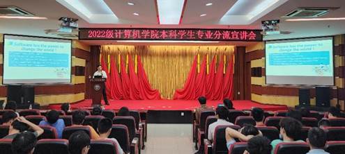 八楼报告厅顺利举办。院纪委书记杨晓岚、副院长彭蓉、学院各系主任、专业教师代表、辅导员以及2022级全体同学参加本次活动。本次会议在以学生为本、激发学习热情、促进学风建设、提高人才培养质量的指导思想下,为专业分流的同学答疑解惑,增进学生对本科专业的了解,合理规划未来发展方向。