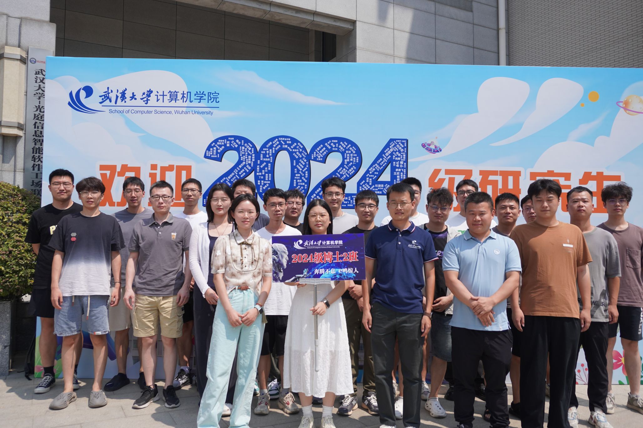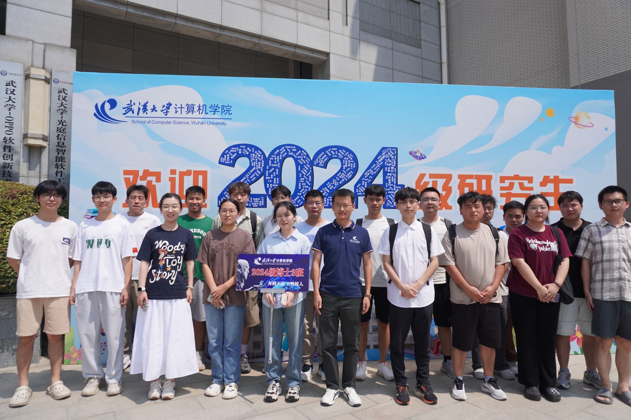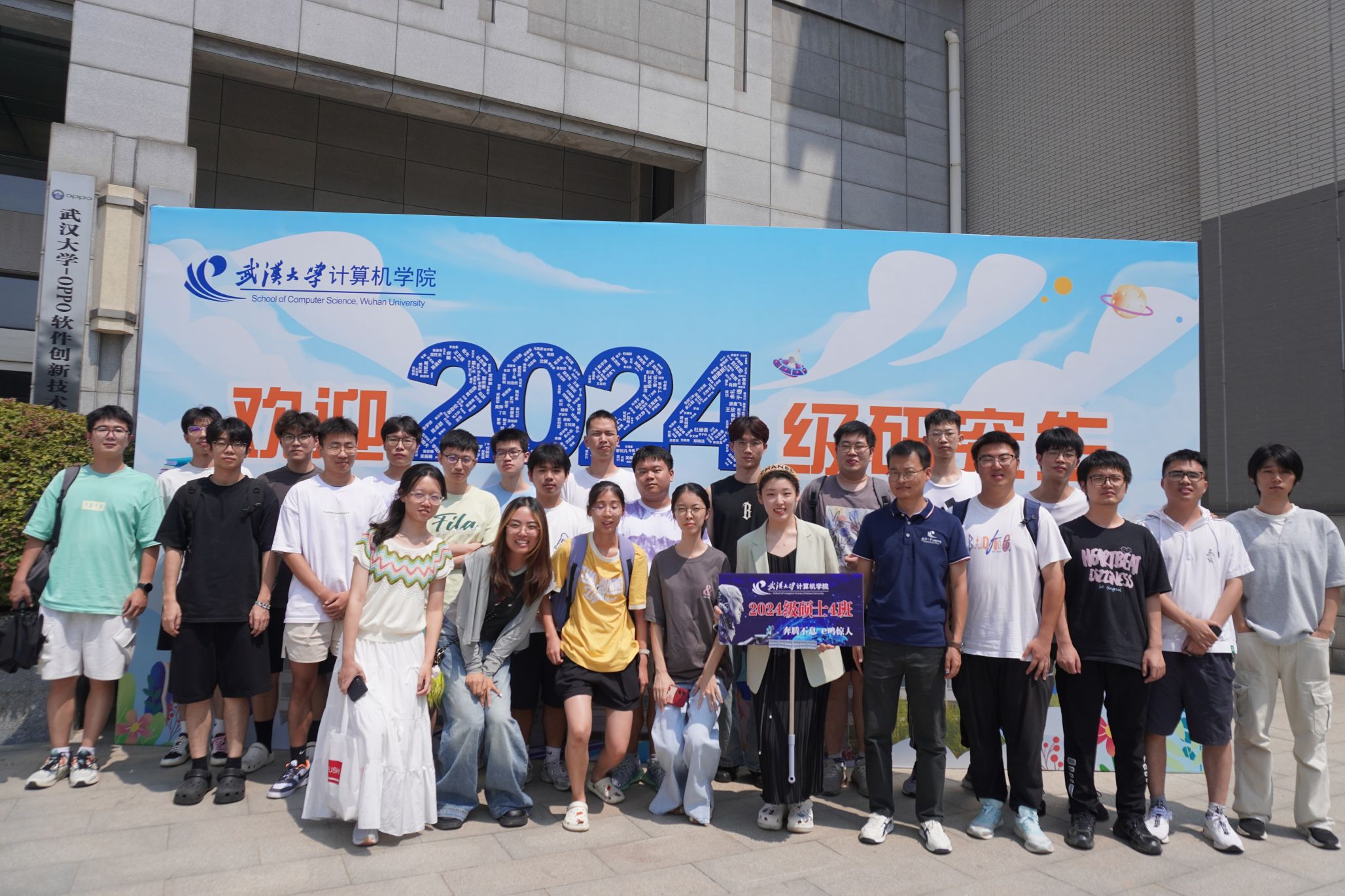 9月4日当天,研究生新生还以班级为单位,利用报告间隙与辅导员张元老师一起前往写有2024级全体研究生姓名的迎新喷绘前,拍摄了入学第一张班级合影。