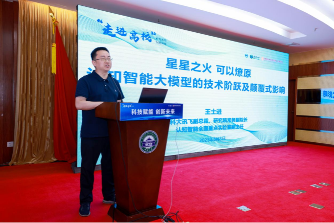 科大讯飞股份有限公司副总裁王士进做专题讲座,报告主题为“星星之火 可以燎原-认知智能大模型的技术阶跃及颠覆式影响”。报告介绍从“感知智能”到“认知智能”的技术变迁,分享认知大模型推动通用人工智能实现技术阶跃、迈入“智能涌现”新阶段,阐述多模态模型GTP-4在数学、艺术、文学、心理等领域呈现的显著效果,并表示科大讯飞积极追赶主流技术,推出“星火认知大模型”,为国内认知智能大模型在产业、科研层面的发展增添新动力。