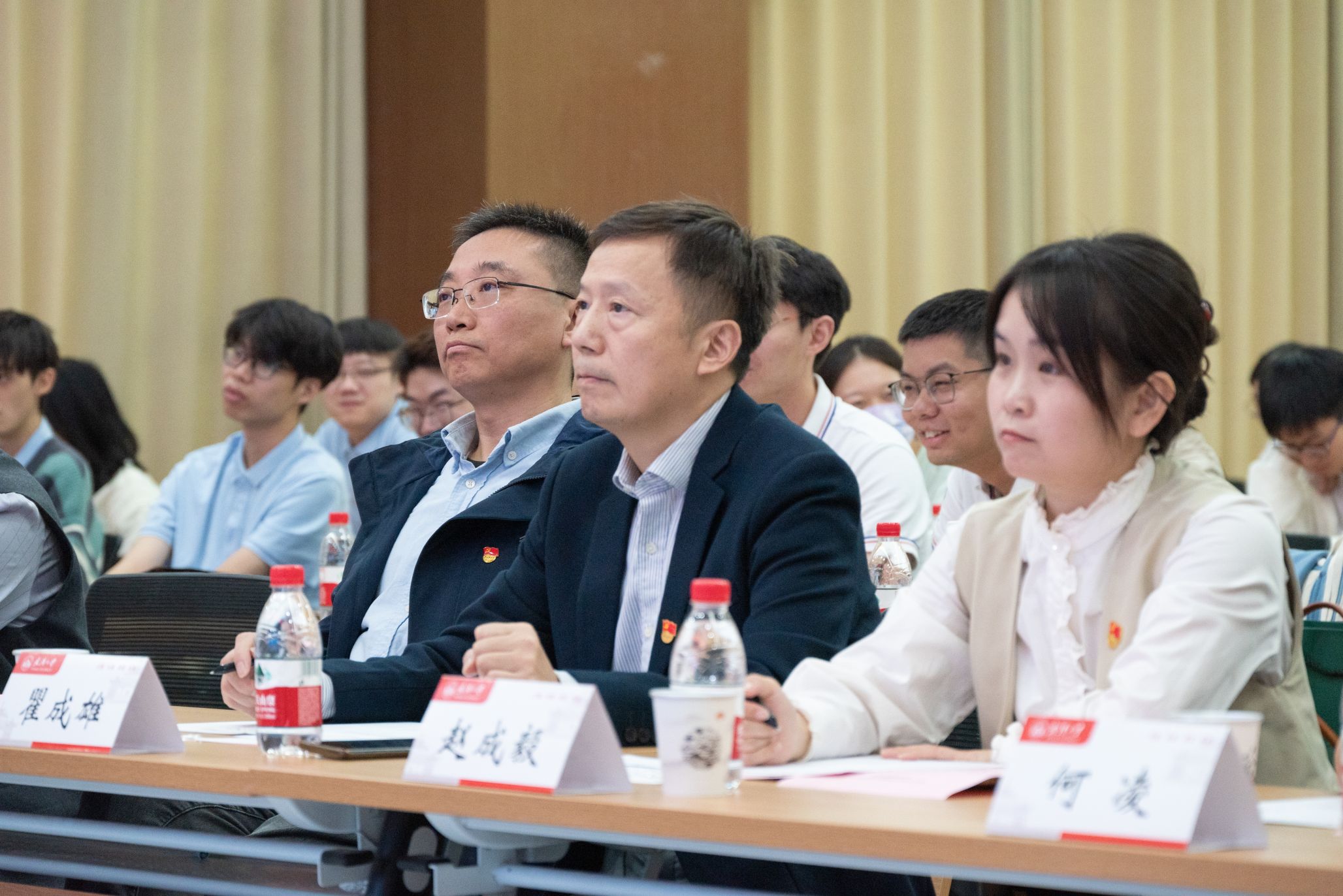 随后,党委研究生工作部党建与思想政治教育办公室赵成毅老师受邀进行总结发言。她首先表达了对信息学部比赛组织者、参赛选手以及各研究生培养单位的感谢,并分享了自己首次作为评委进行观赛的感受。比赛中的团结氛围、选手们的智慧和才干给她留下了深刻印象。她对比赛的内容给予了高度评价,认为比赛像“八节精彩的党课”,主题专业且深刻,表现形式多样、准备充分。此外,赵老师还鼓励各单位将党课在院内、校内进行展示,进一步推广活动影响力。