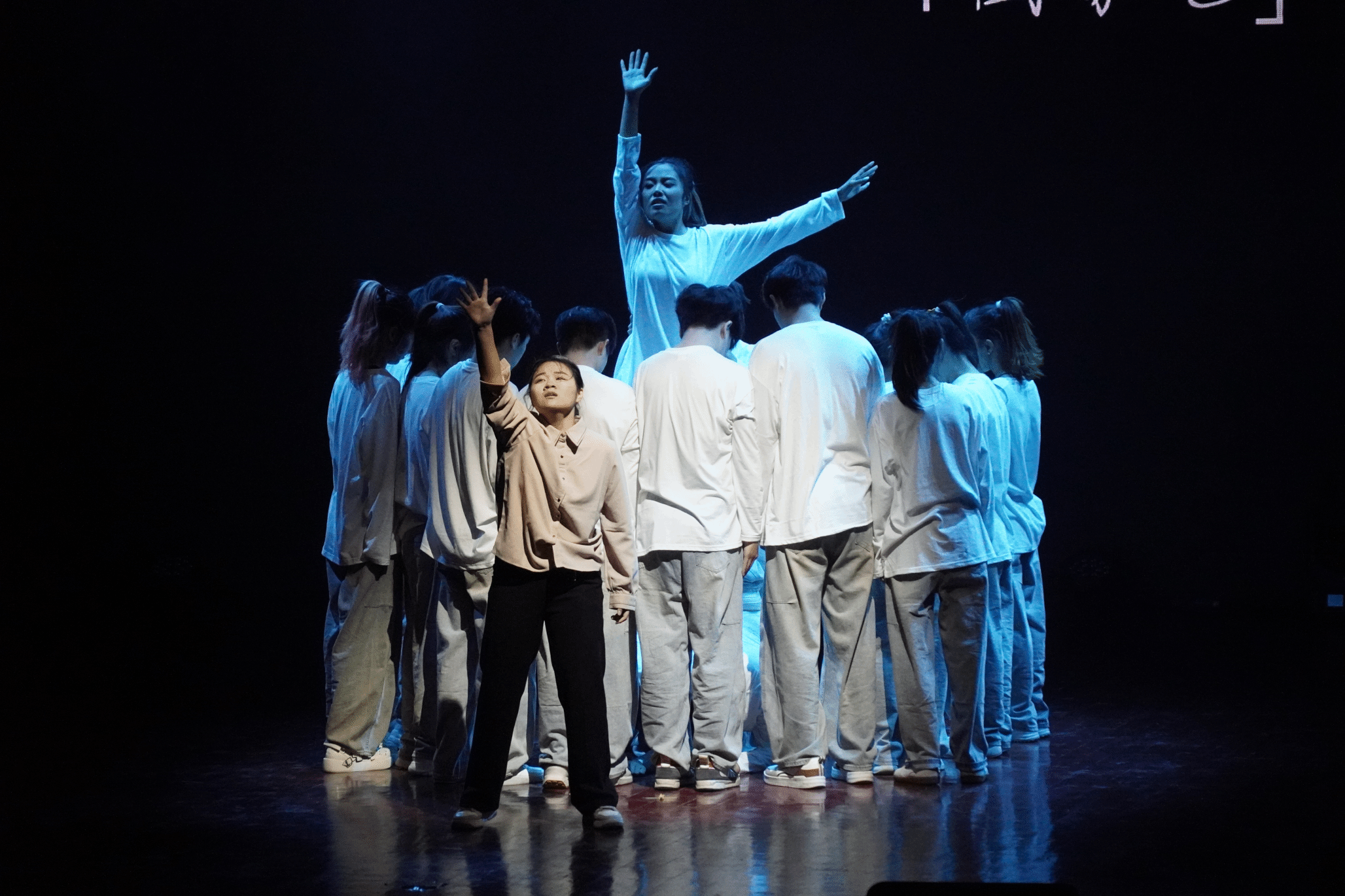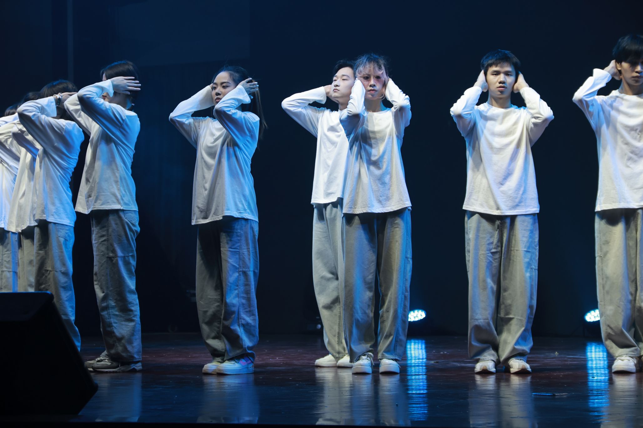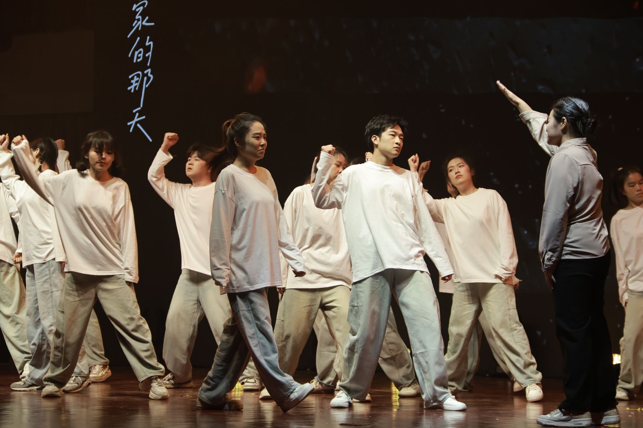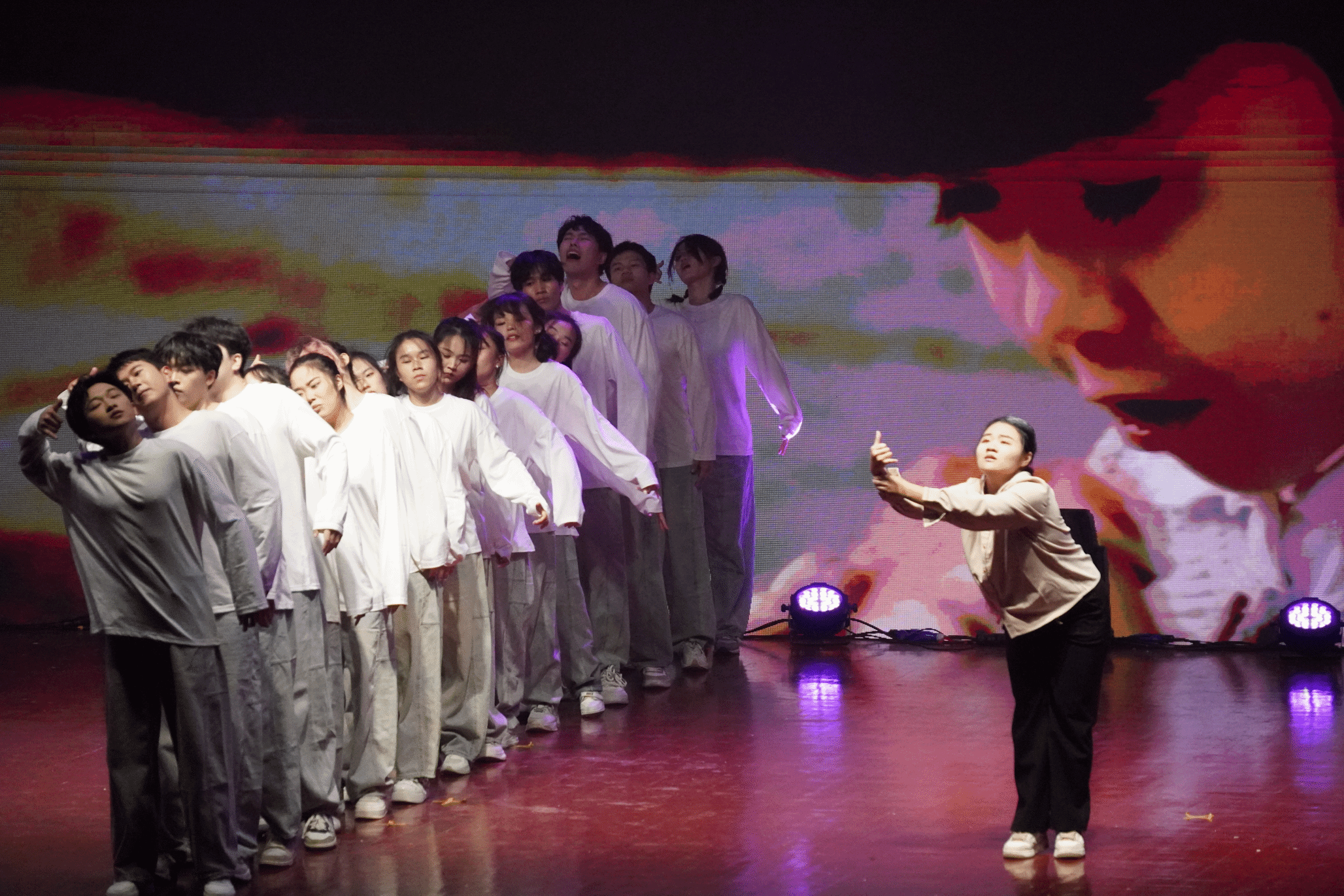 到了上台的时候,这时我们大家都已经非常熟悉了,我们的动作也打磨的很好了,这时的我们已经是一个真正的整体,所以我们已经不害怕、不紧张,因为我们知道旁边是最好的朋友,身后是最可靠的家人,心中想的是最爱的妈妈。我们的心跳是同步的,我们的眼神是坚定的。每一次转身,每一次跳跃,都是我们共同呼吸的证明。随着音乐的最后一个音符缓缓落下,我们的动作在此定格,这是我们呈现给自己和大家的最伟大的作品!