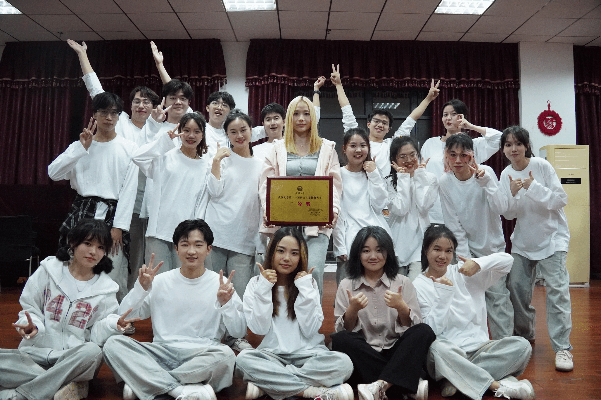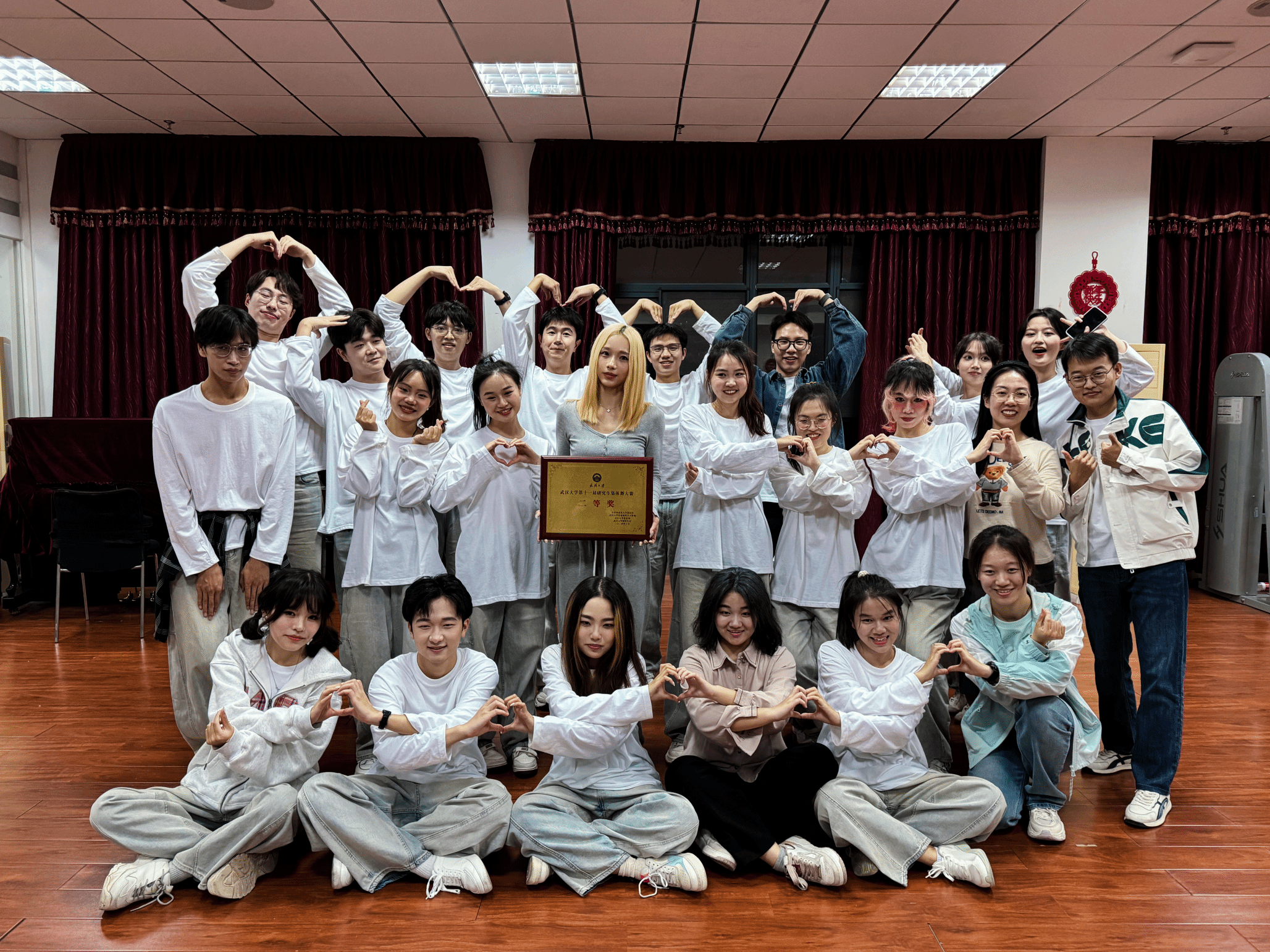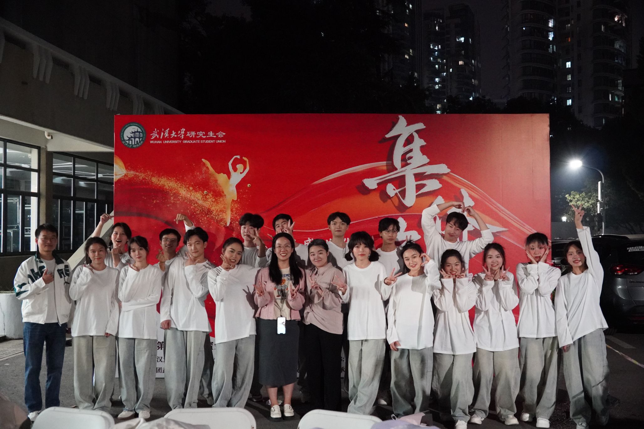 在参与的过程中我并不觉得辛苦,反而每次练舞前都很期待,每次练舞后都很快乐,每次结束后都在期待下一次的开始。或许这就是做喜欢做的事情该有的样子吧!在珞珈山下最美好的时候,大家一起为了纯粹、美好、简单而又快乐的事情而一起付出并且乐在其中,真的是一件弥足珍贵的事情。