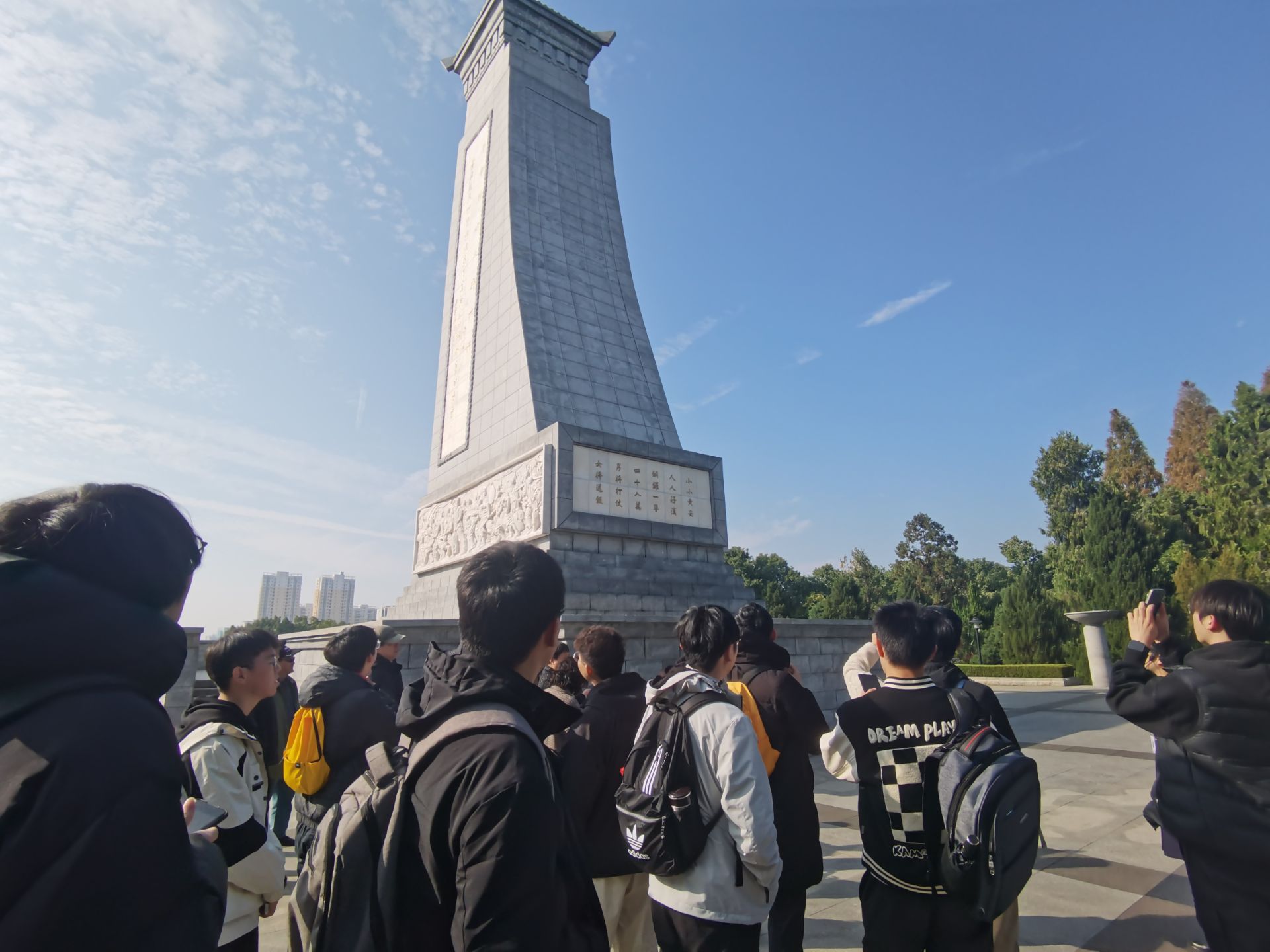 师生们首先来到此次红色教育第一站——黄麻起义和鄂豫皖苏区纪念园。踏上纪念园的台阶,映入眼帘是27米高的花岗岩纪念碑高耸入云,“黄麻起义和鄂豫皖苏区革命烈士纪念碑”金色大字气势磅礴。师生们缓步环绕纪念碑默默追思缅怀革命英烈。