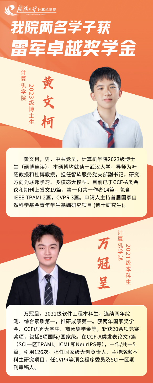 2023级人工智能系博士生黄文柯、2021级软件工程专业本科生万冠呈斩获这一殊荣。
