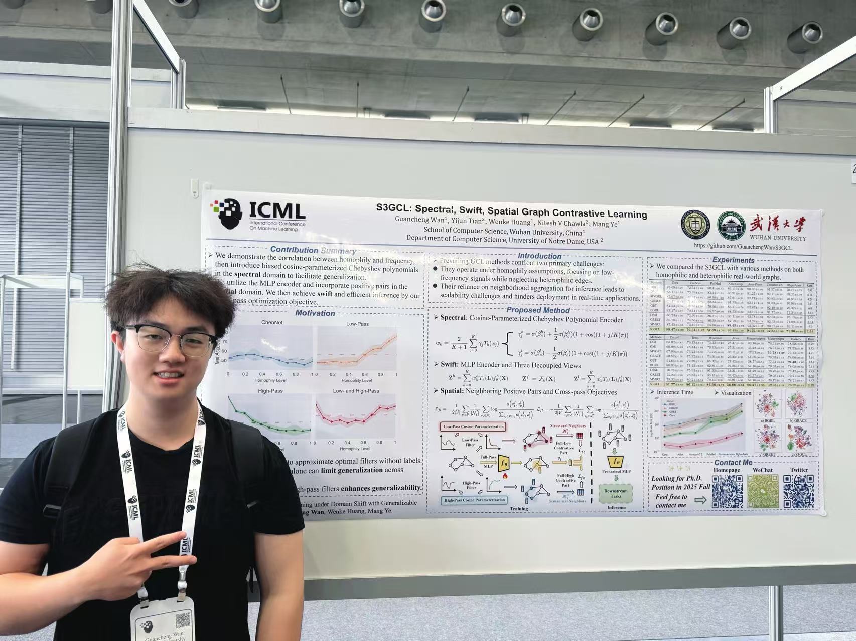 参与多次国际会议,包括维也纳ICML 2024、巴塞罗那KDD 2024、澳门IJCAI 2023。以海报和口头汇报方式介绍学术成果,组织学术研讨会,在国际舞台上传递武大声音。