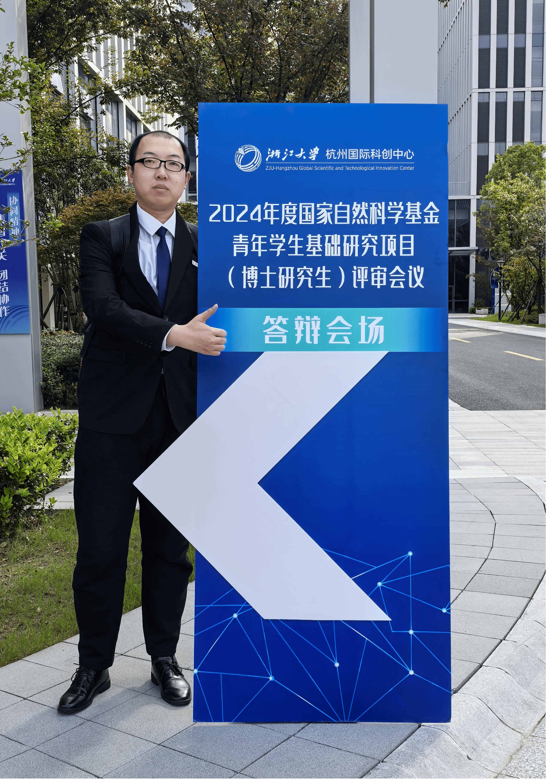 博士生邹鑫在答辩会场外留影