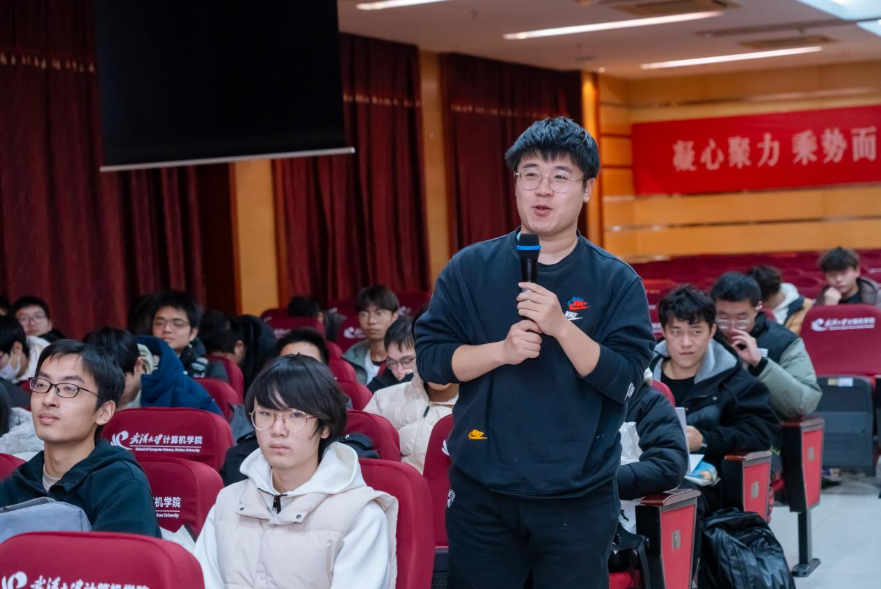 见面会结束后,陈小平在学院八楼报告厅为2024级特色班的全体同学们作了题为“大学 决定你的一生”的主题报告。在报告会现场,陈小平结合个人学习经历、创业经验等,向同学们介绍人工智能领域的前沿技术、发展趋势以及大学发展建议。其中他特别给同学们提出IQ、EQ以外的SQ,即:Social Quotient社交商数,鼓励同学们在大学要多外出实践、多与人交流,“3Q”理论的讲解与分析引发在场同学们的热烈讨论。