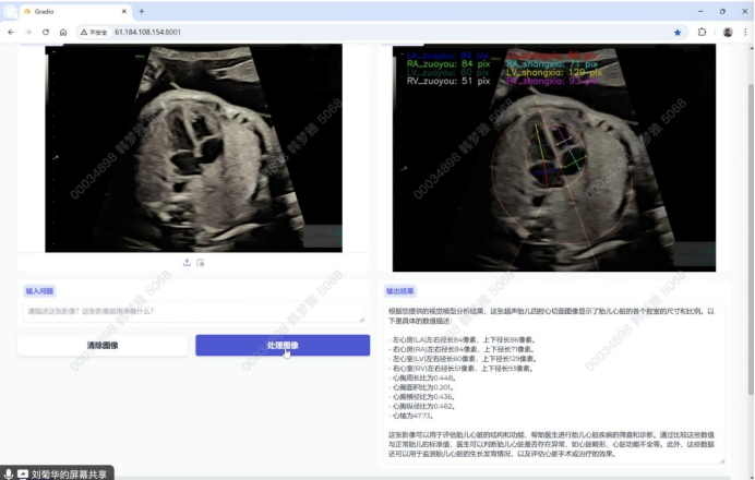 在项目和课题汇报结束后,项目组在项目网站(//fetusgpt.avidol1.com/)发布了胎儿超声影像智能测量多模态大模型以及结构畸形智能诊断大模型系统,并演示了系统如何通过图像输入和提问生成文本描述、生物测量及诊断结果。项目组还邀请成员进行测试并提供反馈,以便后续优化系统。