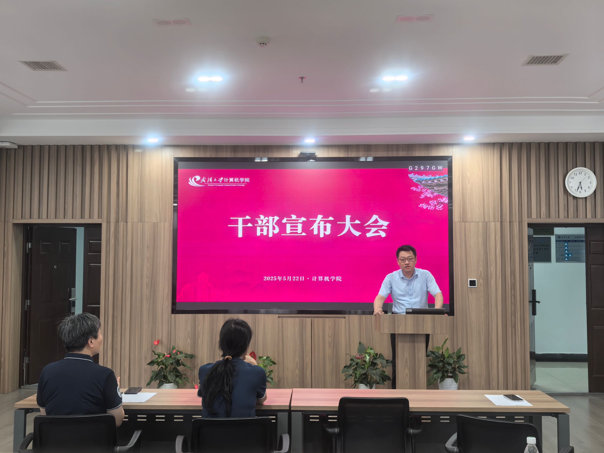2025年5月22日下午,学院在B404会议室召开干部任职宣布会。院领导班子、系、中心党支部委员、副主任以上干部、教职工代表及办公室党政管理人员等参会。会议由党委副书记金娟主持。