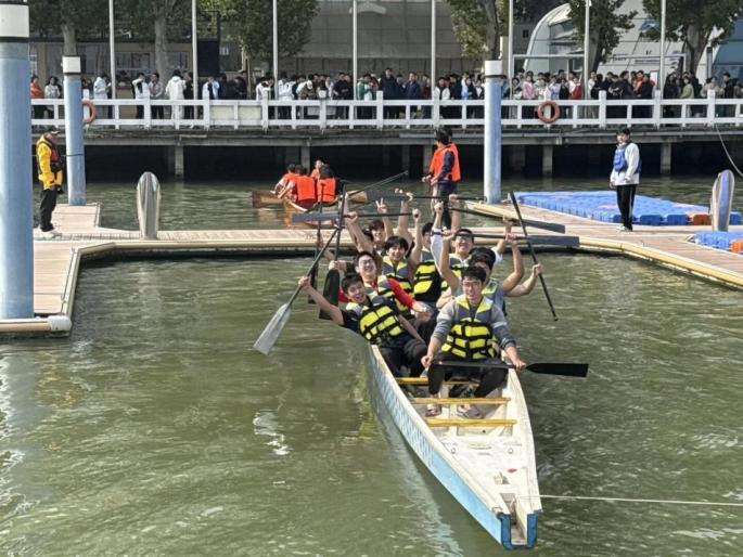 耀眼奖杯的背后,是日复一日的艰辛付出。赛前备战期,队员们主动放弃休息时间,反复打磨划桨角度、发力节点,通过高强度体能训练突破生理极限,用上百次的合练筑牢团队默契。每一滴汗水都浸润着初心,每一次呐喊都凝聚着信念,这份荣誉正是对“同舟共进、奋楫争先”龙舟精神的最佳诠释,更是计科人攻坚克难、协同作战特质的生动彰显。