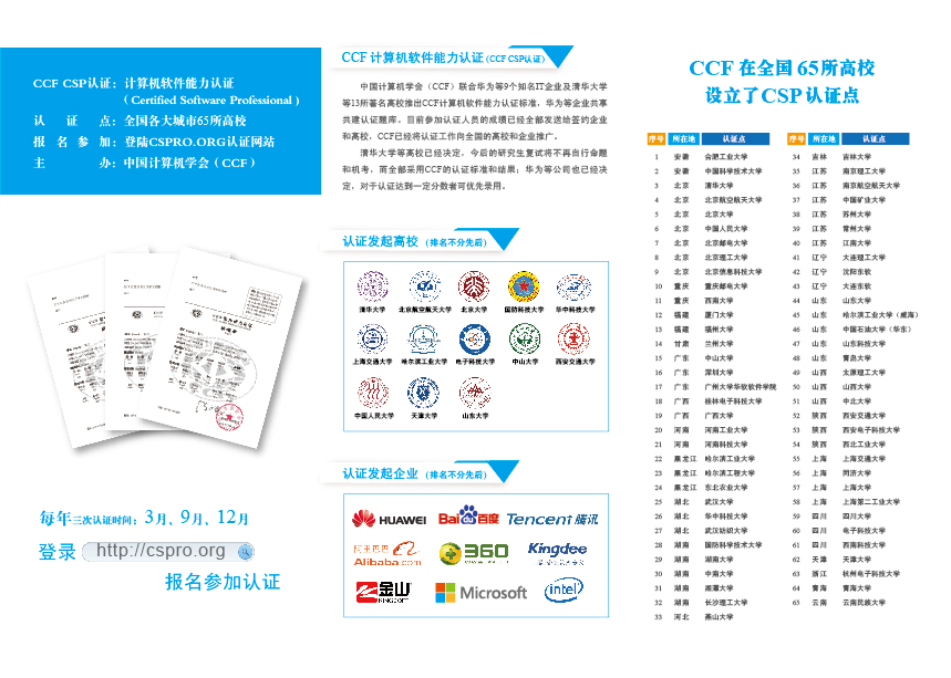 2、对于认证中出现违纪及作弊行为的,一经发现,立即取消认证资格,记入黑名单并通知相关高校及用人单位。如果认证点有任何作弊、抄袭等行为,认证点监考人员没有及时制止并给予处罚,将取缔所在高校认证点并在CCF官网公布。